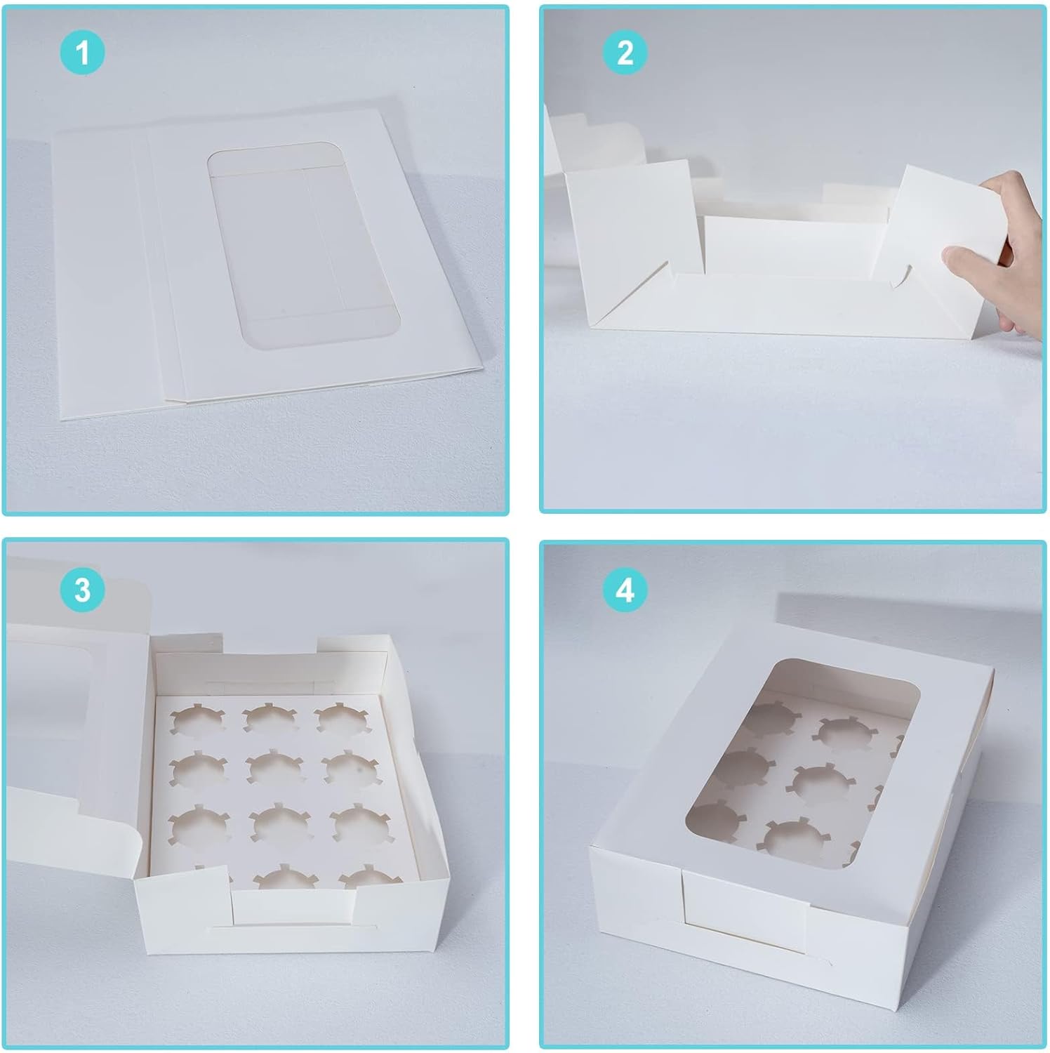 - EASY ASSEMBLY - Our cupcake carrier are flat and pre-folded,making it easy to quickly fold and assemble the box without glue or other tools.For perfect results,assemble the box according to the indentations of the bread box.