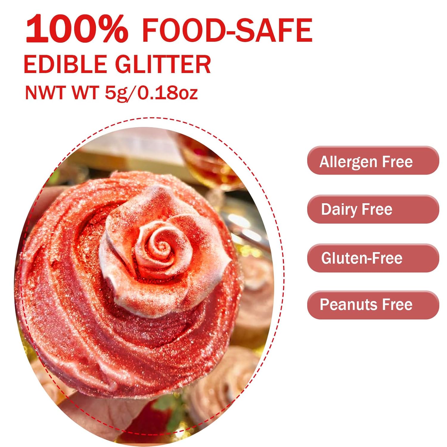 - Made of Premium Food Grade Material - 100% MSDS-certified food ingredients! Rose gold edible glitter for drinks, made of food grade mica powder imported from Germany and food coloring, no sugar or spices are added. Dairy-free, Gluten-free, Vegan Friendly, adults or kids can be safe to use.