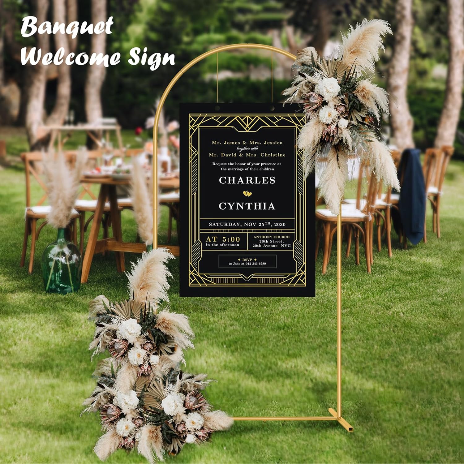 - 【Material of Metal Arch Backdrop】The wedding arch frame is made of very strong and smooth metal material with glossy gold color, will not fade or rust. You will love its very good texture.