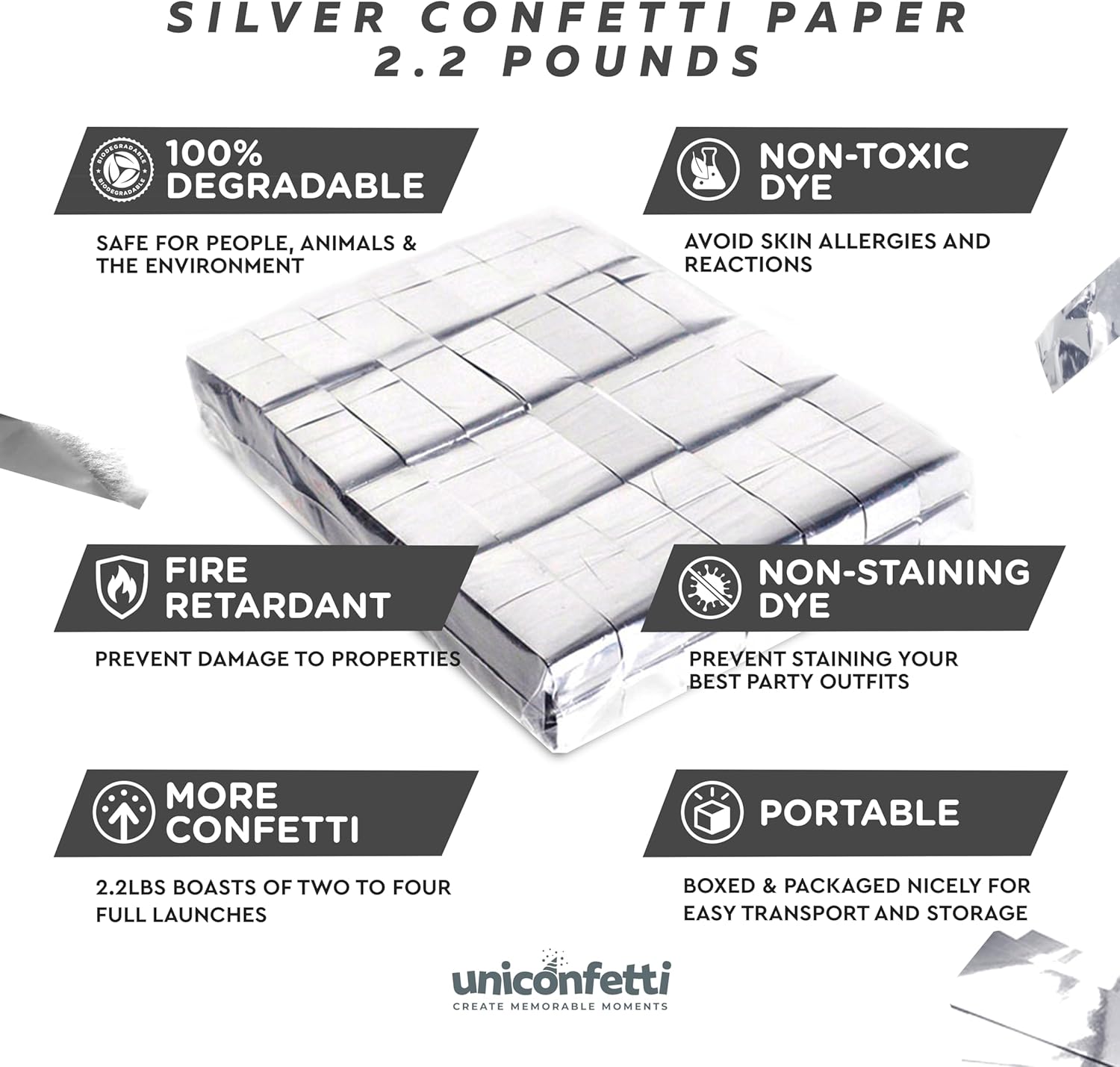 Silver Confetti Paper - BULK 2.2lbs | 1kg, Biodegradable Tissue Paper, Rainbow Light Weight, Non-Staining Paper, for Events, Crafts, Decorations
