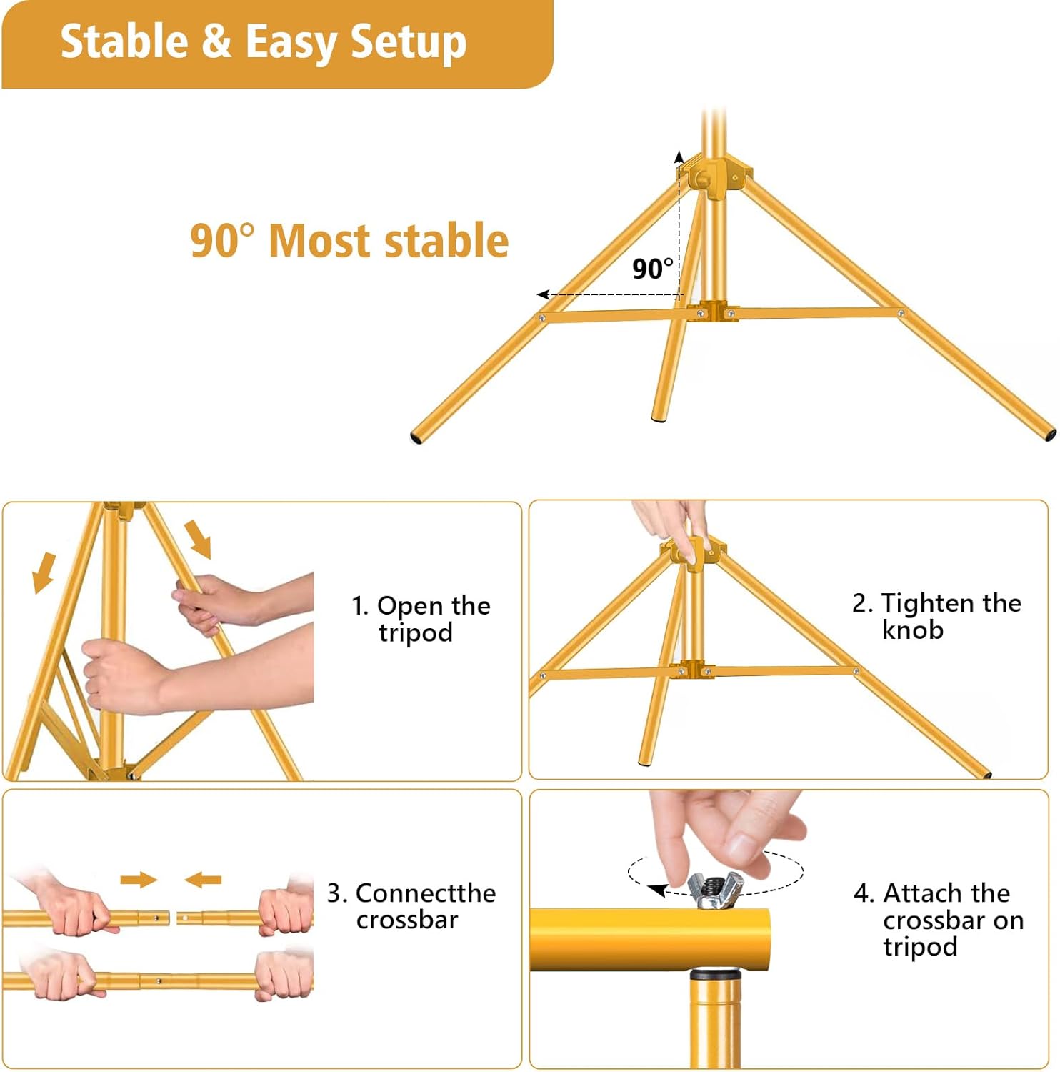 - Adjustable Height & Width: With adjustable height (2.6ft/0.8mβ7.0ft/2.1m) and width (5ft/1.52mβ10ft/3m) Solid Safety 3 Legs Stages,Aluminum alloy construction Supporting Stands,Cross bar consists of Four sections, making it simple to adjust the width.