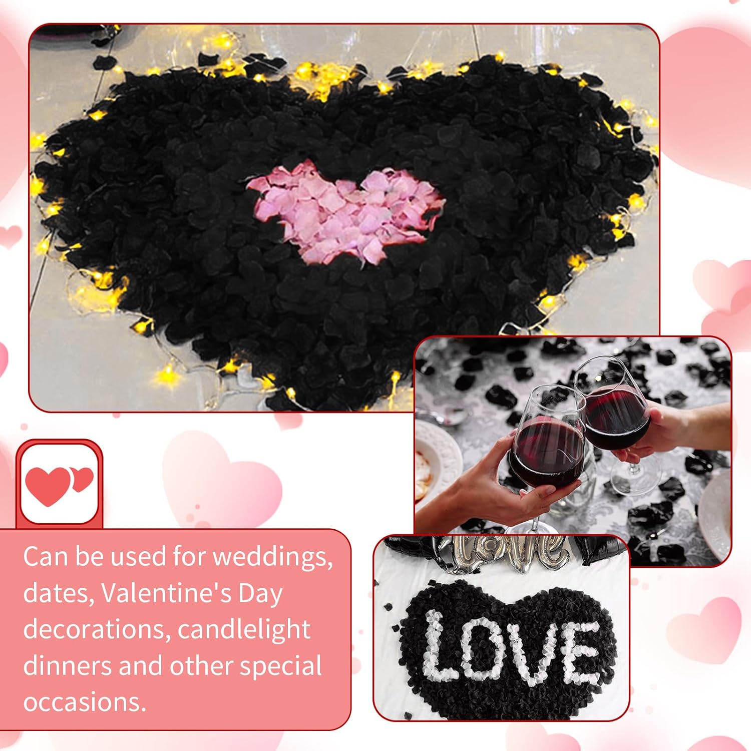 1000 Pcs Artificial Fake Rose Petals,Flower Petals for Romantic Night, Engagement, Party, Wedding, Event Flower Decorations, in Bulk(Black)