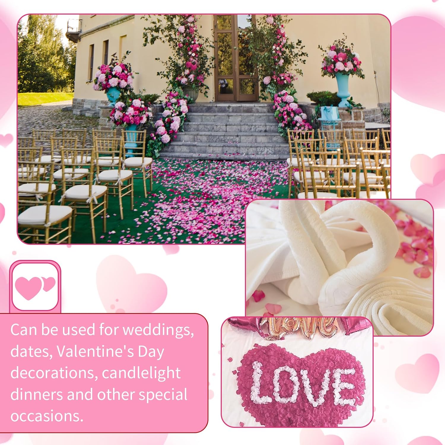 - 🌹【Create a Romantic Atmosphere】🌹These perfect artificial petals are ideal for scattering on occasions like Valentine's Day, weddings, romantic dates, proposals, table decorations, aisle runner scatters, and any event where you want to emphasize romantic love. They are the go-to choice for rose petal decorations at parties, wedding anniversary celebrations, romantic nights, and various banquet occasions.