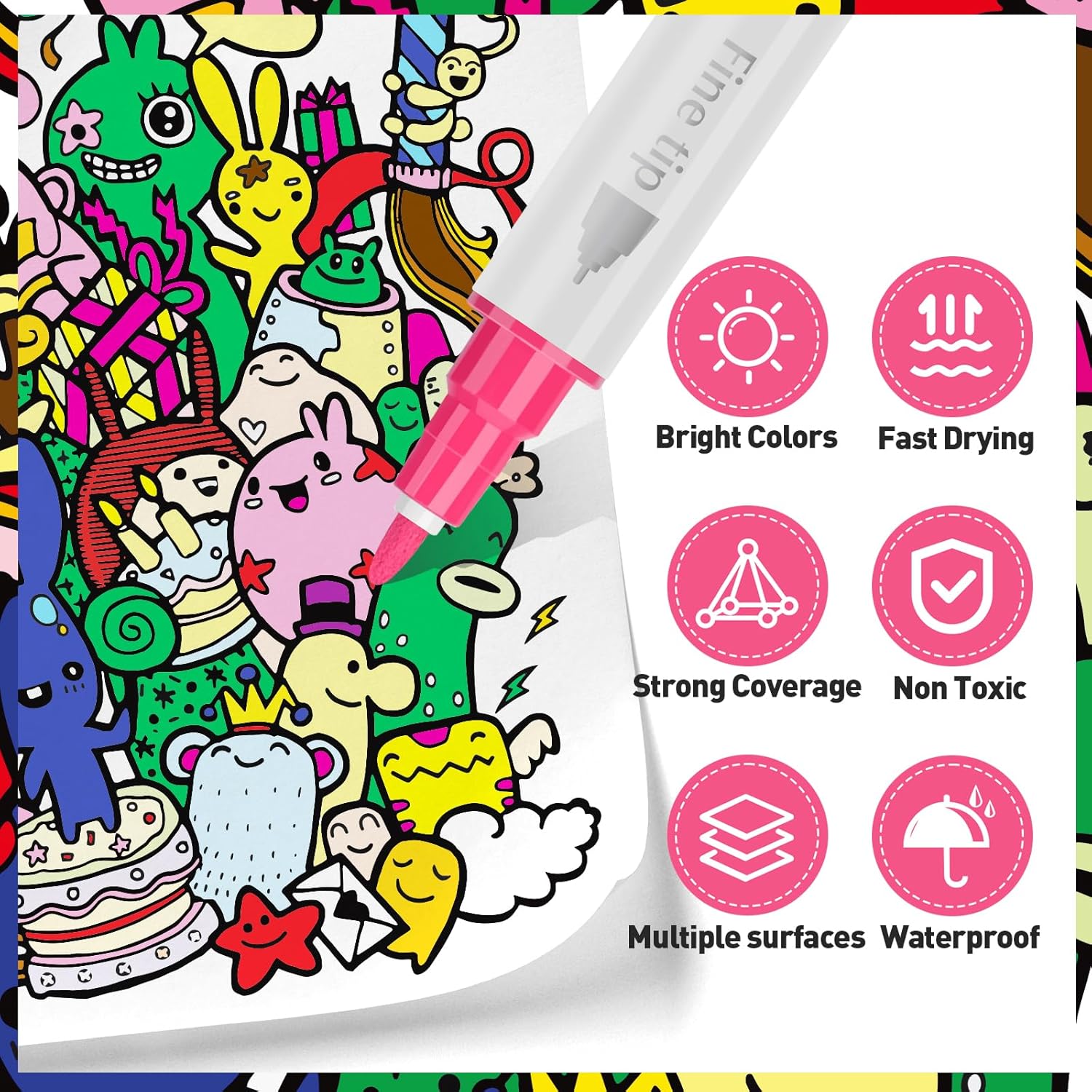 - 【Convenient to Use】Our paint pens with new design.You don't need to shake or press when using it,open the pen cap and you can start your creative journey.our acrylic pens are cotton nibs that it can be used directly.Warm tip:To ensure the smoothness of the ink, please place the pen flat and cover it with a pen cap after use.