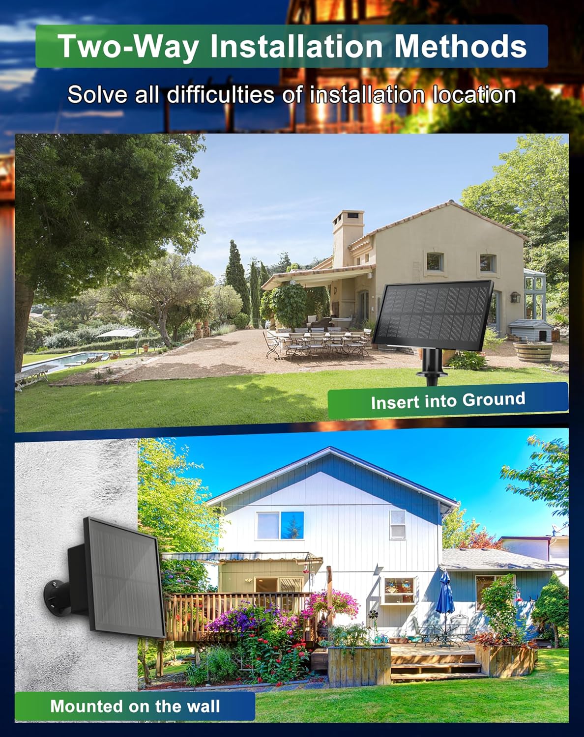 - 💡【5 Lighting Modes and Auto On/Off】Choose from 5 different lighting modes: steady light, slow flashing, fast flashing, intermittent flashing, and breathing light. Thanks to the built-in light sensor, these solar edison lights charge during the day and automatically turn on at dusk and off at dawn. Tips: When using for the first time, please press the switch on the back of the solar panel.