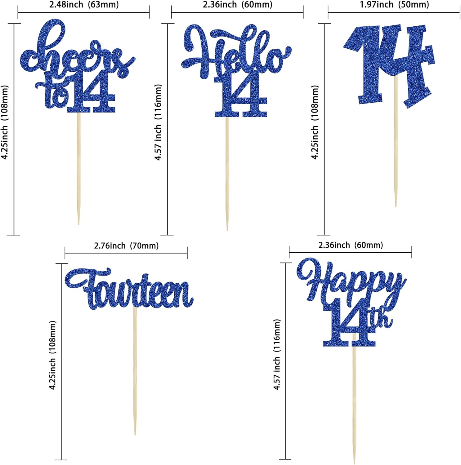 30Pcs 14th Birthday Cupcake Toppers Hello 14 Cupcake Picks Fourteen Cheers to 14 Years Old Cake Decorations for 14th Birthday Anniversary Party Supplies Deep Blue Glitter