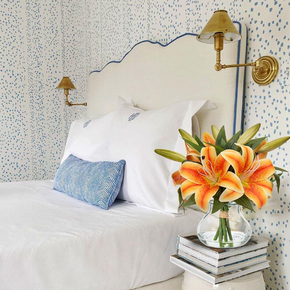 - 🌷【High-Quality Materials】Are you tired of dying flowers? Then our artificial tiger lily flowers with vivid water will be perfect for you. Fake tiger lily flowers have 6 heads and it are made of high-quality silk, combined with exquisite production technology. Unlike fresh flowers require everyday upkeep, the hydrangea fake flower can be placed and reusable in many settings for a long period without any care. They will remain fresh-looking and the same beautiful year after year.