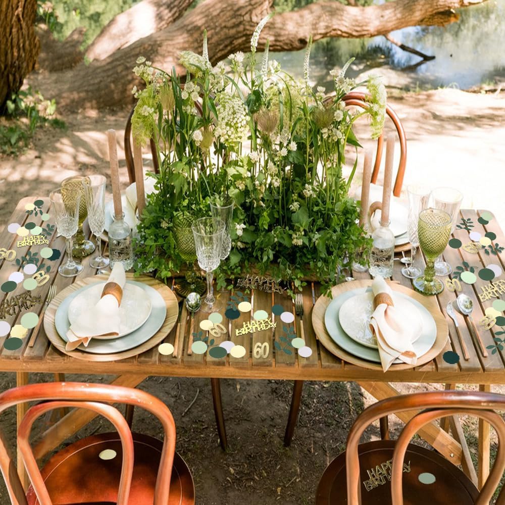 Sage Green 60th Happy Birthday Confetti, 60th Birthday Table Decorations Scatter Green Gold Foil Cake Confetti Decorations for 60 Bday Woman Men Party Decor 230 Pcs