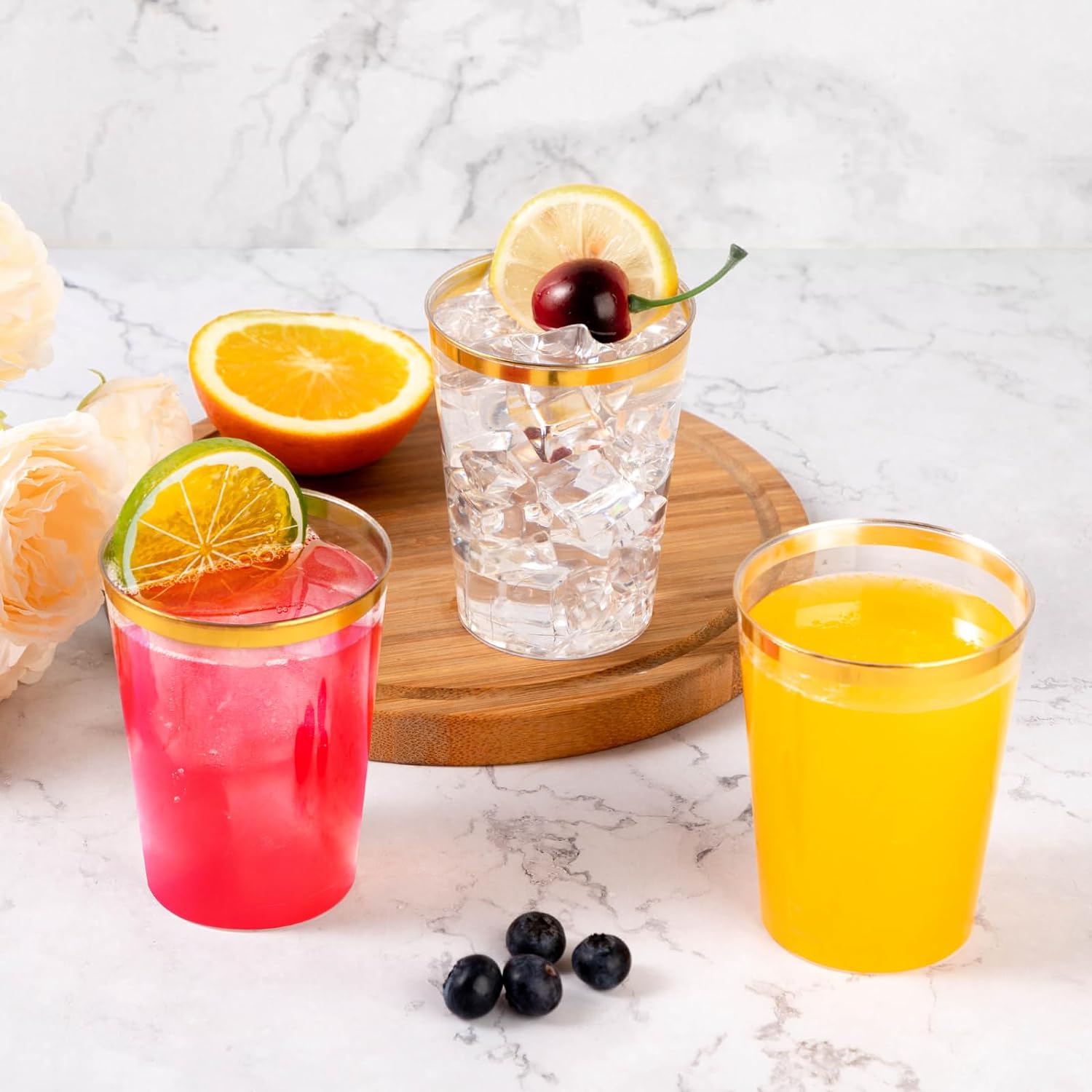 Goodluck 100PCS 14oz Gold Plastic Cups for Party, Disposable Gold Rim Cups, Plastic Cocktail Glasses for Wedding Thanksgiving, Christmas, and Parties