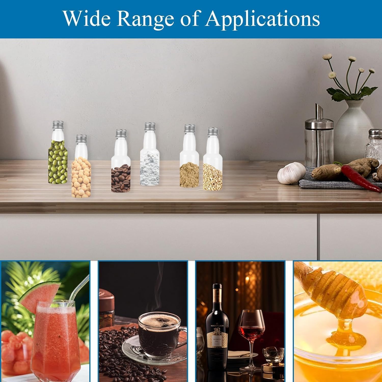 - 【Good Sealing】These small liquid bottles are equipped with aluminum screw caps that fit the bottle tightly to avoid liquid spillage, ensuring the food or liquid in the bottle will not leak and stain your clothes and keep your drinks fresh.