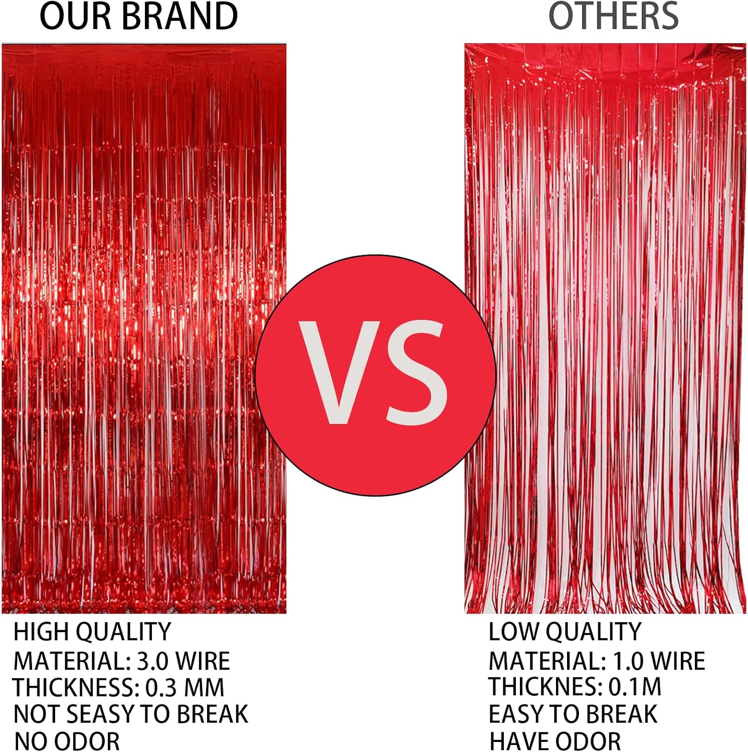 Keyali 2 Pack 3.3 * 8.3 ft Foil Curtain Metallic Tinsel Fringe Curtains Photo Booth Props Backdrop for Birthday Wedding Engagement Baby Shower Christmas Holiday Celebration Partyl,Red