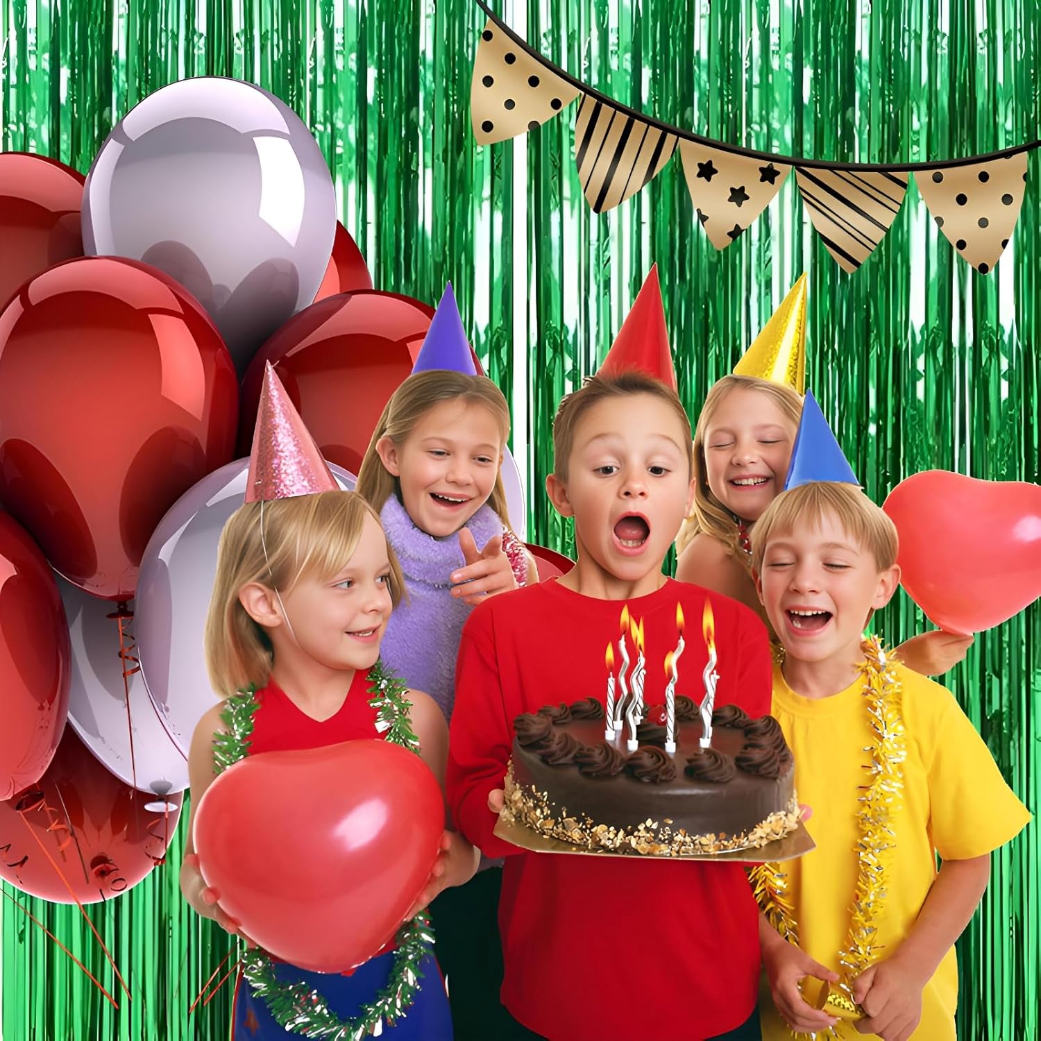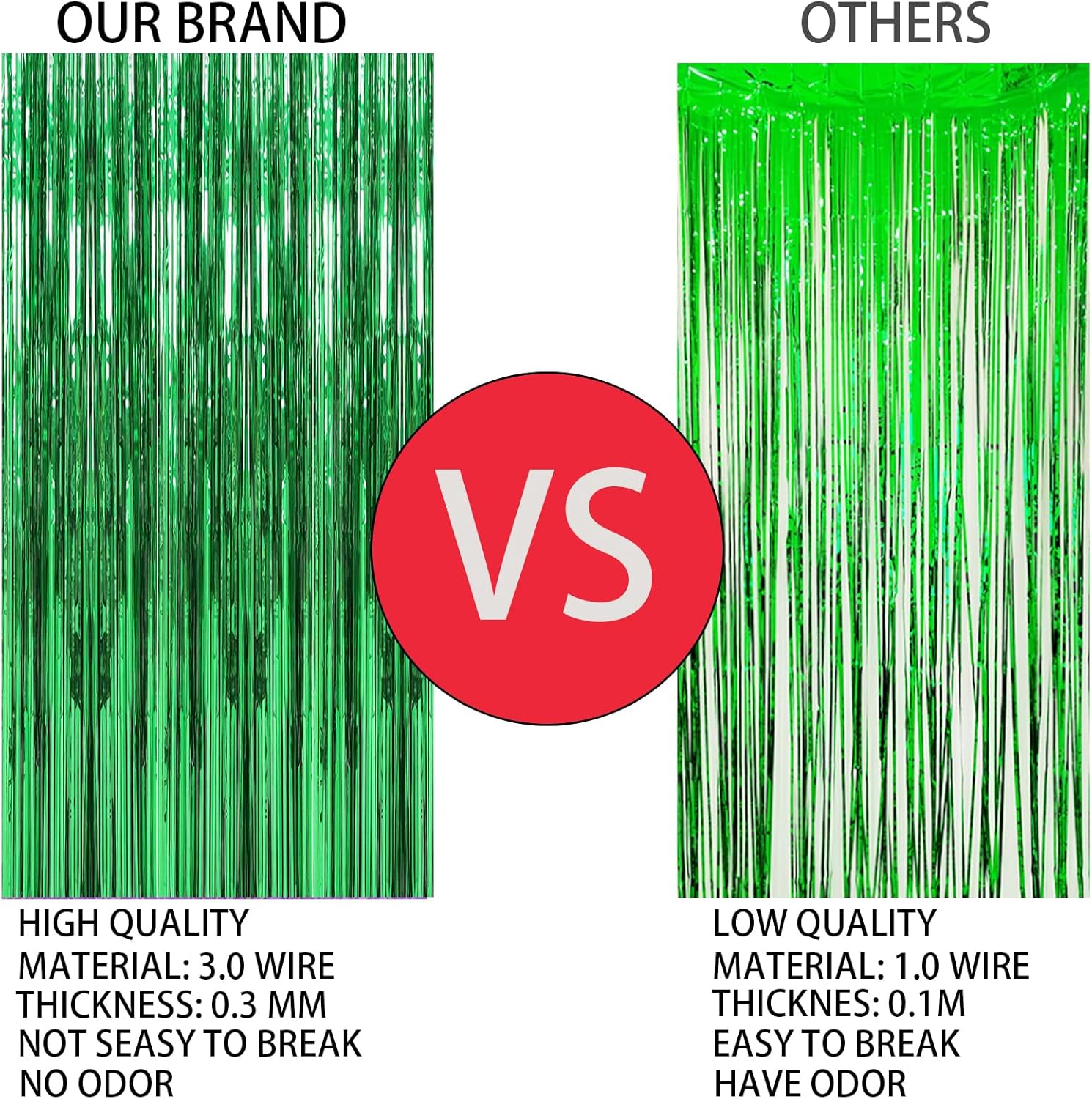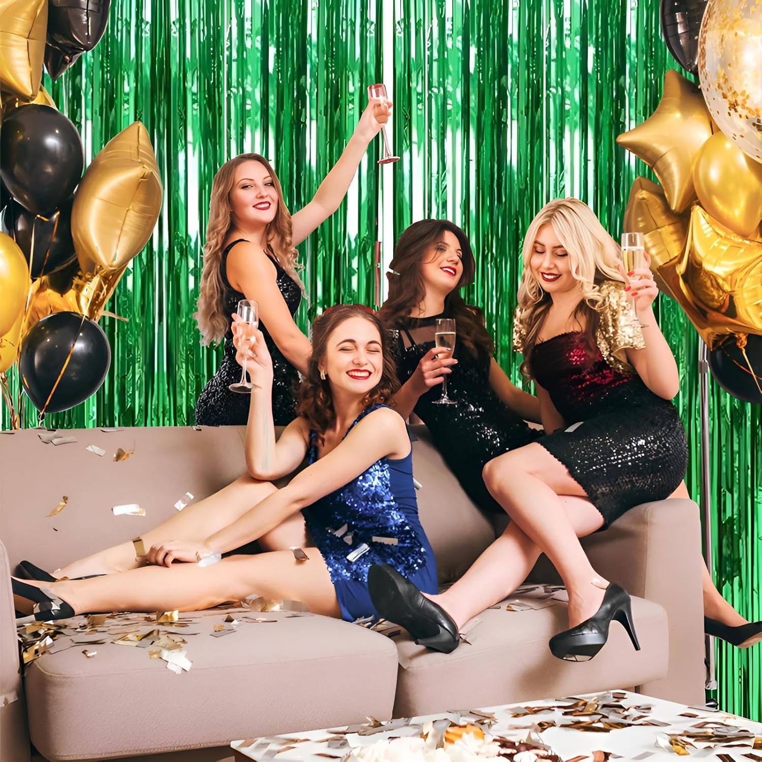 Keyali 2 Pack 3.3 * 8.3 ft Foil Curtain Metallic Tinsel Fringe Curtains Photo Booth Props Backdrop for Birthday Wedding Engagement Baby Shower Christmas Holiday Celebration Partyl,Green