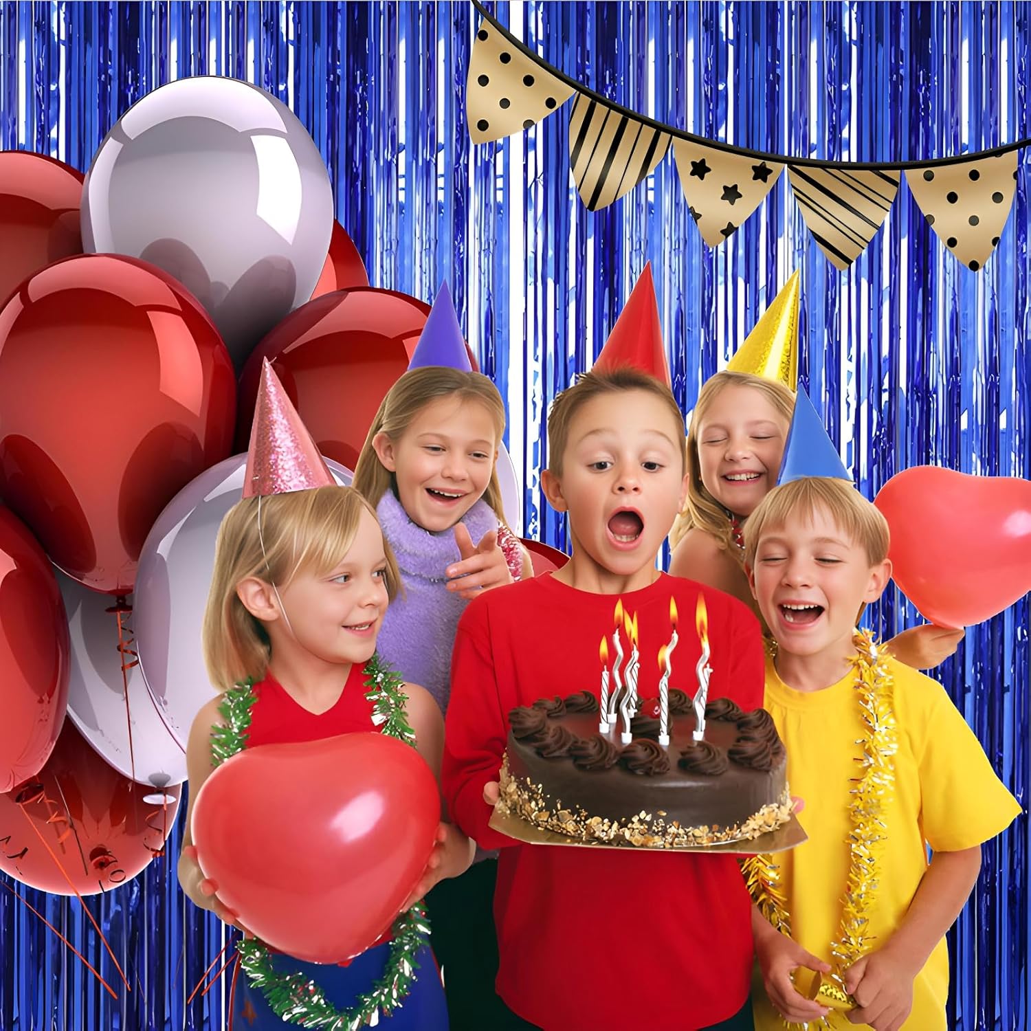 - Pair with other party decorations: Tinsel backdrop curtain can be paired with LED lights, balloons, banners, wreath, garlands, swirl streamer, tissue paper pom poms.