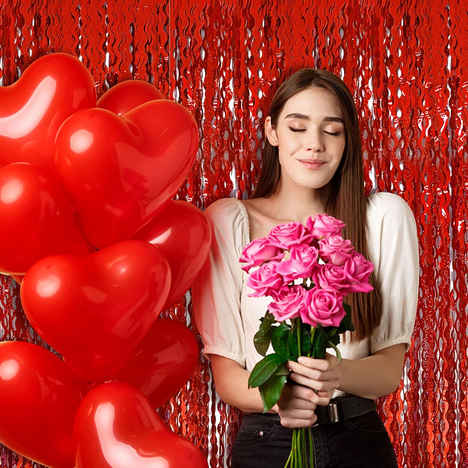 - Valentines Day Backdrop:2Pack, each curtains size is 3.28 ft x 6.56 ft, enough length foil fringe backdrops are perfect for the door, wall and table,feel free to cut to any length you want.
