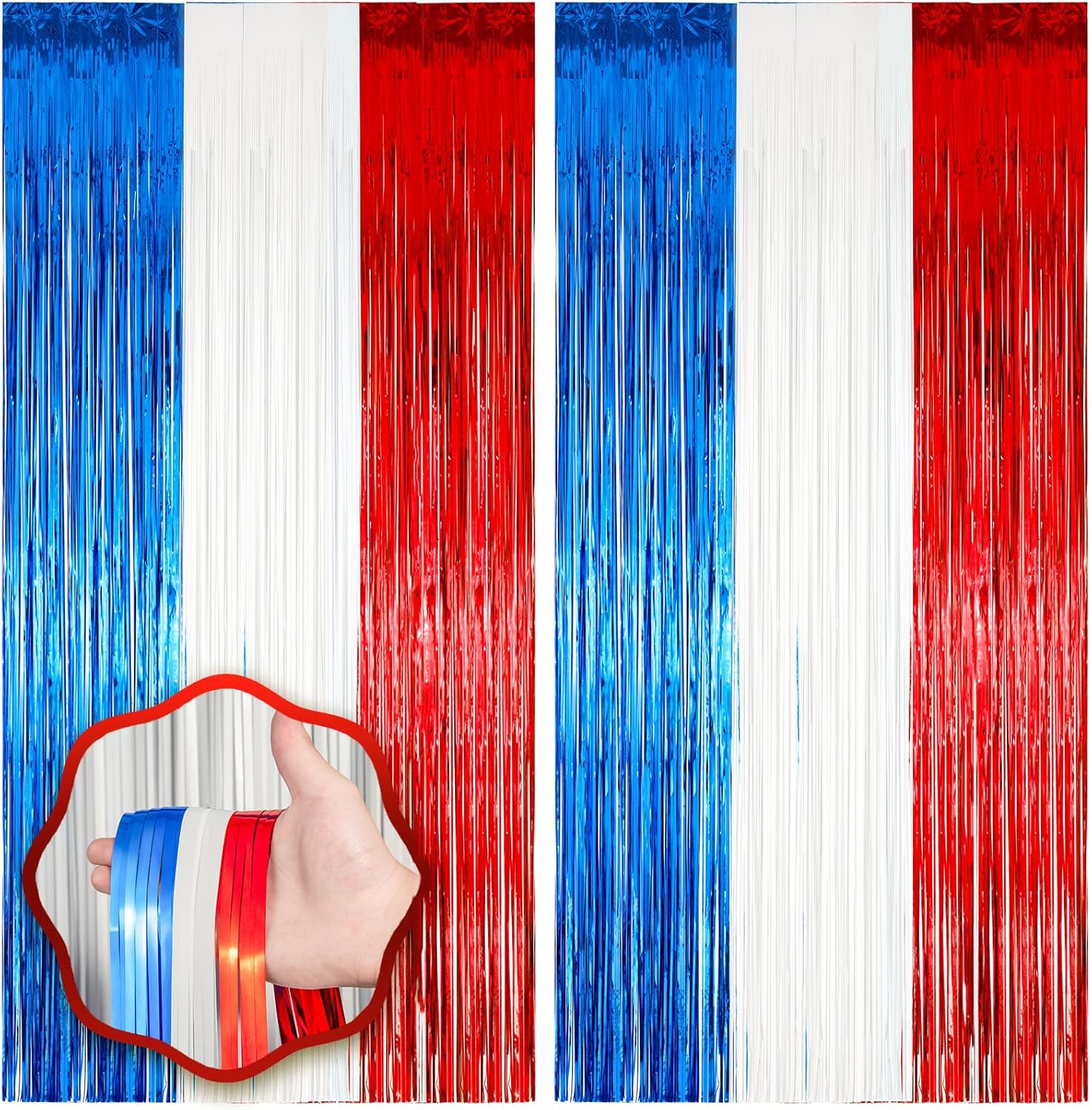 • Premium Material: This Red White and Blue foil curtain backdrop is made of stable tinsel, non-fading, stay shiny and reusable. Unfold it and then enjoy your glittering party