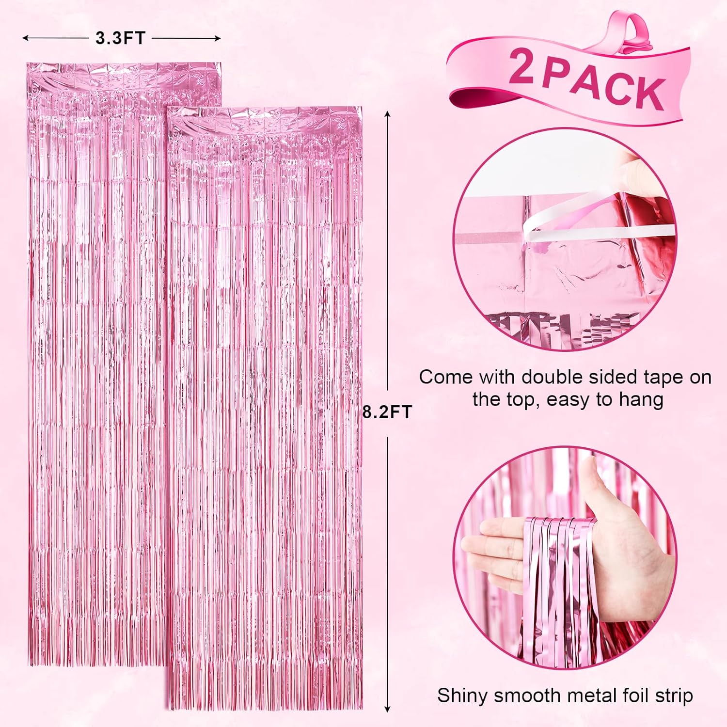 • Premium Material: This Light Pink foil curtain backdrop is made of stable tinsel, non-fading, stay shiny and reusable. Unfold it and then enjoy your glittering party