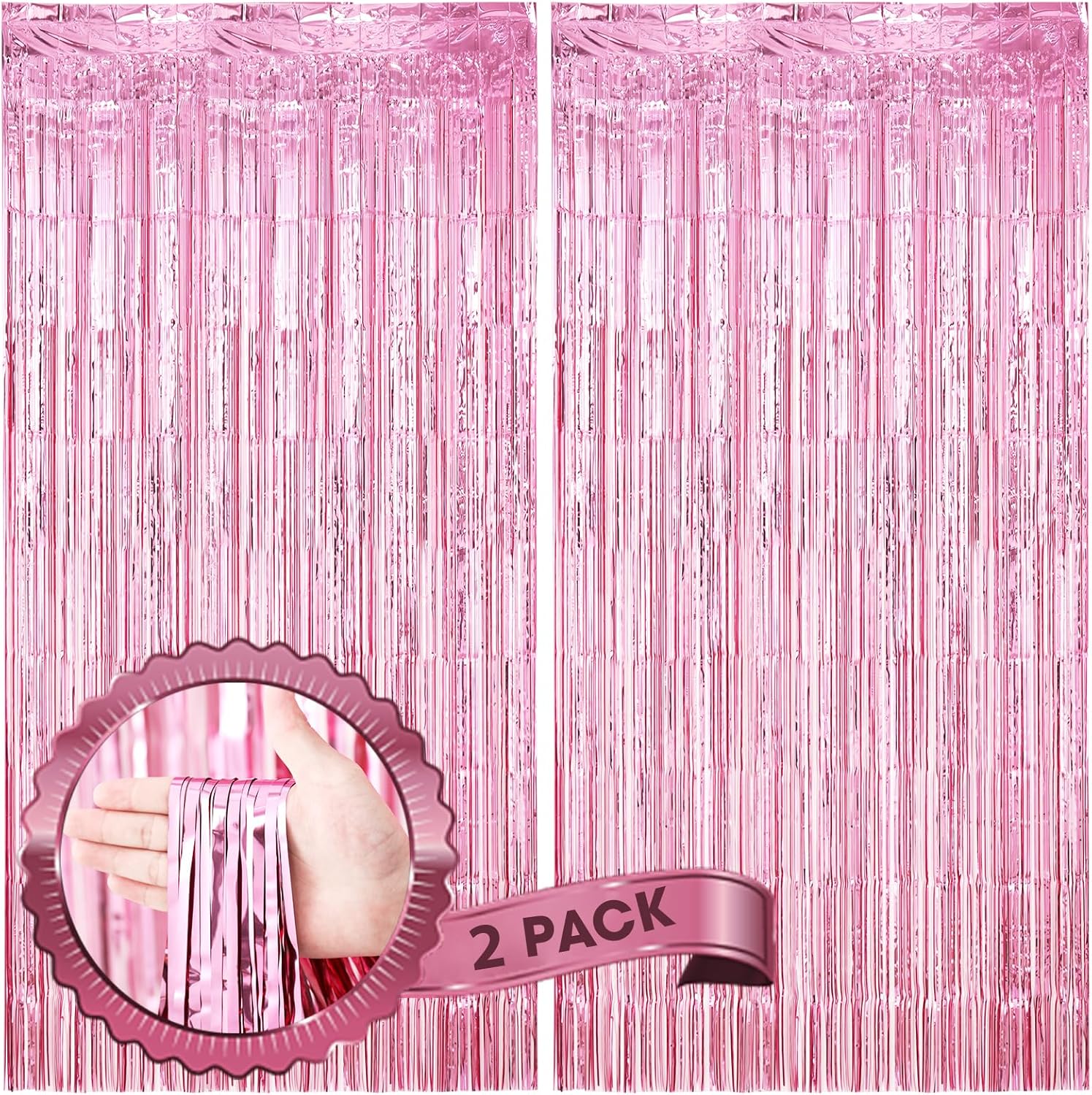 2 Pack Light Pink Foil Fringe Backdrop Curtains, Tinsel Streamers Birthday Party Decorations, Fringe Backdrop for Graduation, Baby Shower, Gender Reveal, Disco Party
