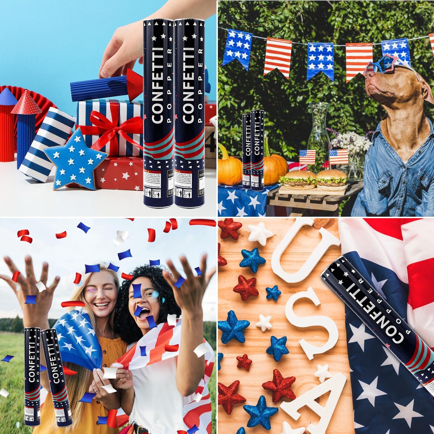 - 【Easy Use 12 Pack 4th of July Patriotic Confetti Poppers】Simply twist the bottom to release a thrilling burst of confetti, creating a festive atmosphere instantly.Our 4th of July Patriotic confetti poppers are safe, non-toxic, and fun to pop.