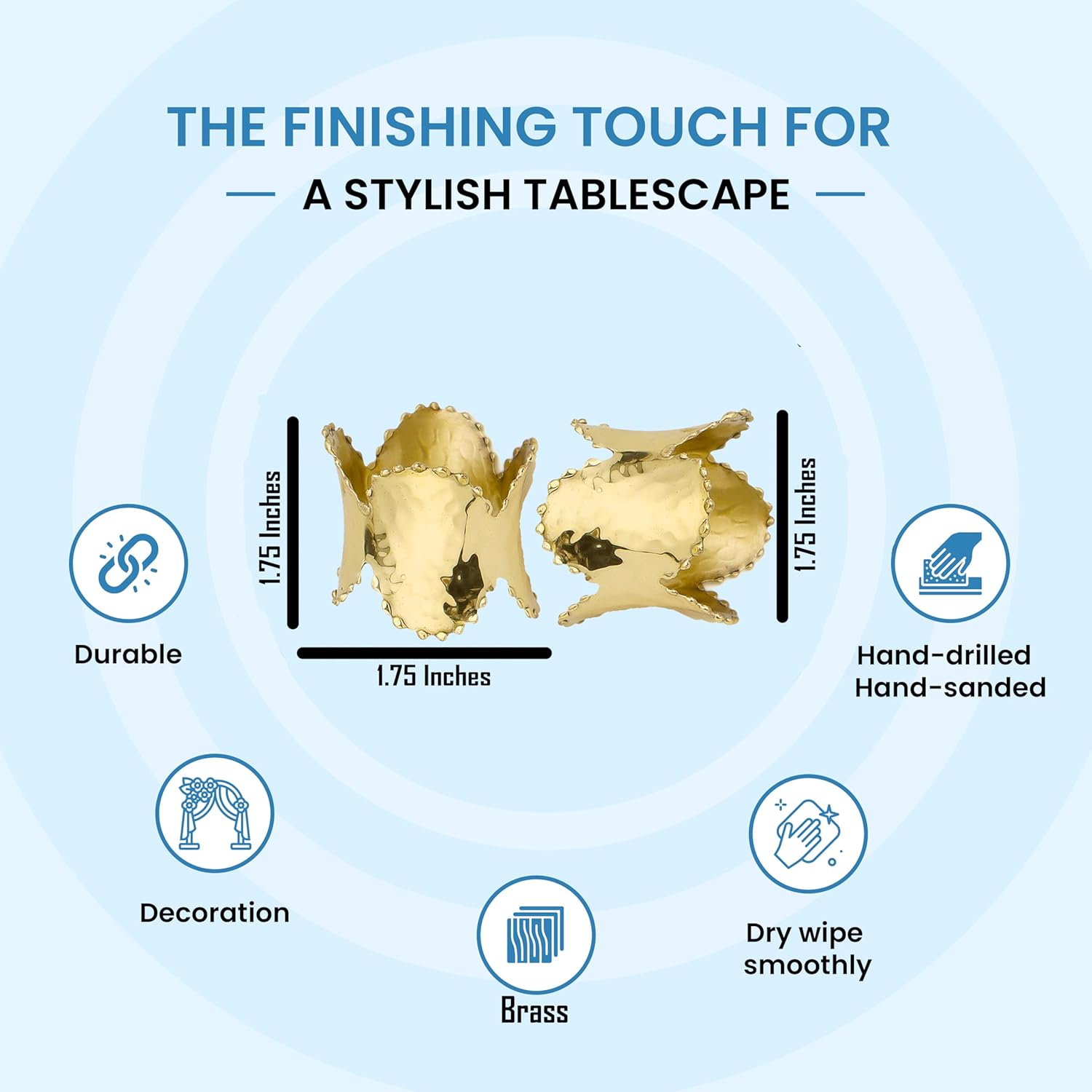 - Durable Material: Crafted from high-quality brass, these napkin rings are built to last, ensuring long-term use and enjoyment.