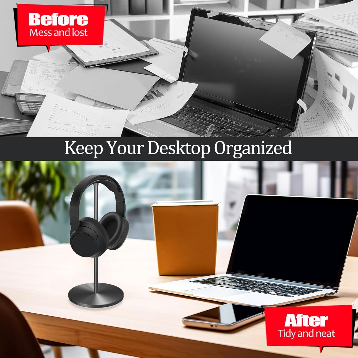 • [Versatile Headphones Stand] Our headphones stand is the perfect accessory for your desk, providing a sleek and organized solution to store and display your headphones. Whether it's a gaming headset or everyday headphones, our stand can hold them securely, keeping your workspace clutter-free. this headphone hanger stand provides a convenient storage solution for your favorite headphones while saving valuable desk space.