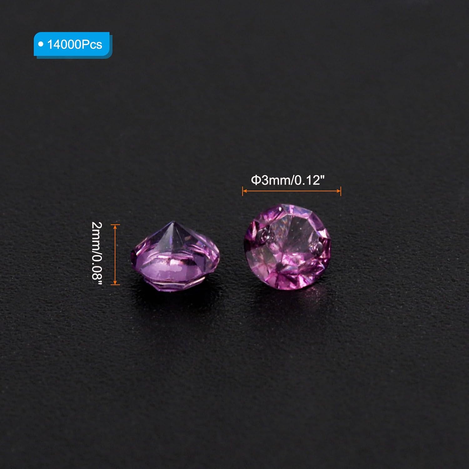 - Color: Dark Purple AB; Material: Acrylic; Size: 3mm x 2mm/ 0.12 x 0.08 inch (Dia.x H); Packing List: 14000Pcs x Acrylic crystal diamonds