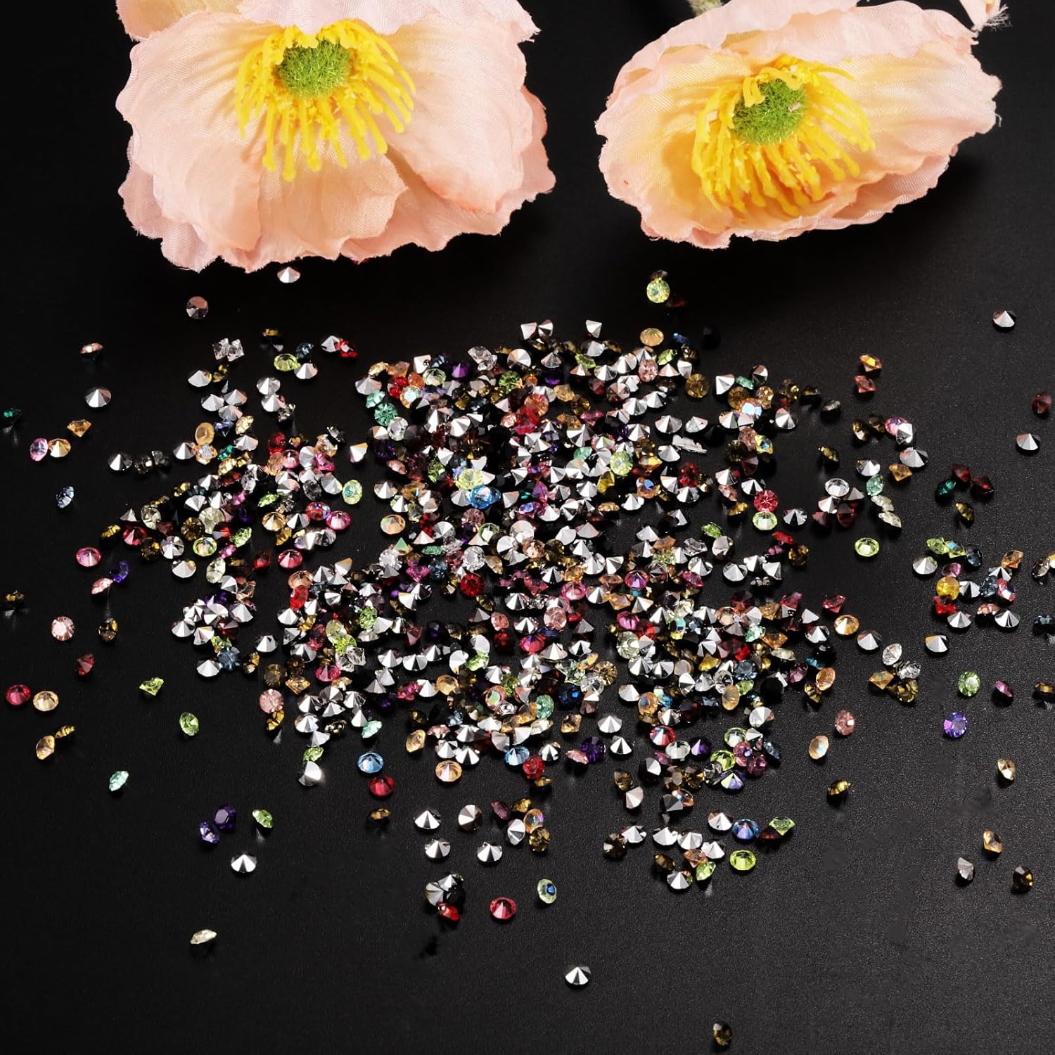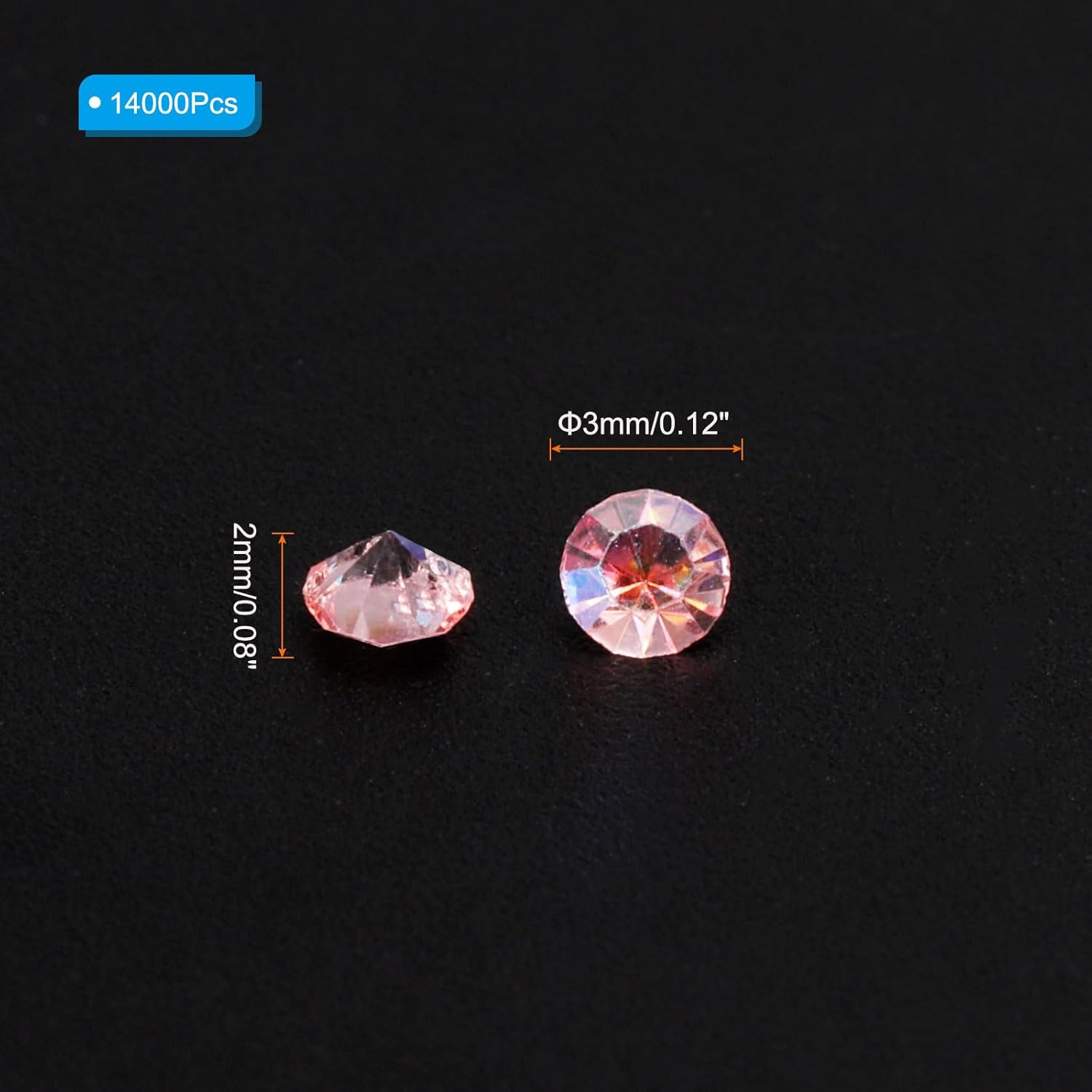- Color: Pink AB; Material: Acrylic; Size: 3mm x 2mm/ 0.12 x 0.08 inch (Dia.x H); Packing List: 14000Pcs x Acrylic crystal diamonds
