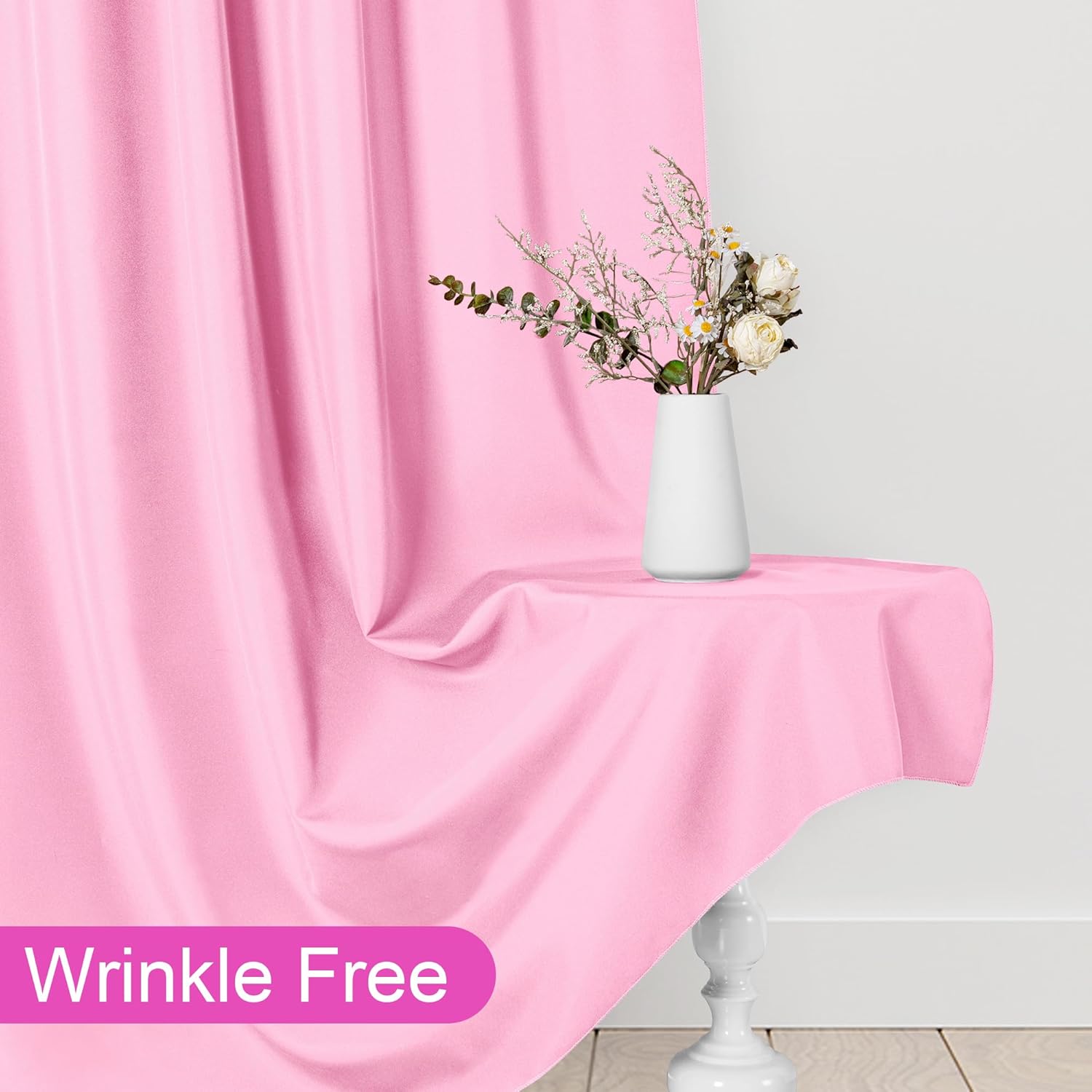 - MATERIAL: Made of high quality polyester, are very soft, durable and chemical-free. No loose threads and uneven hems. Full seam on both sides and bottom of the background drapes are tightly stitched.