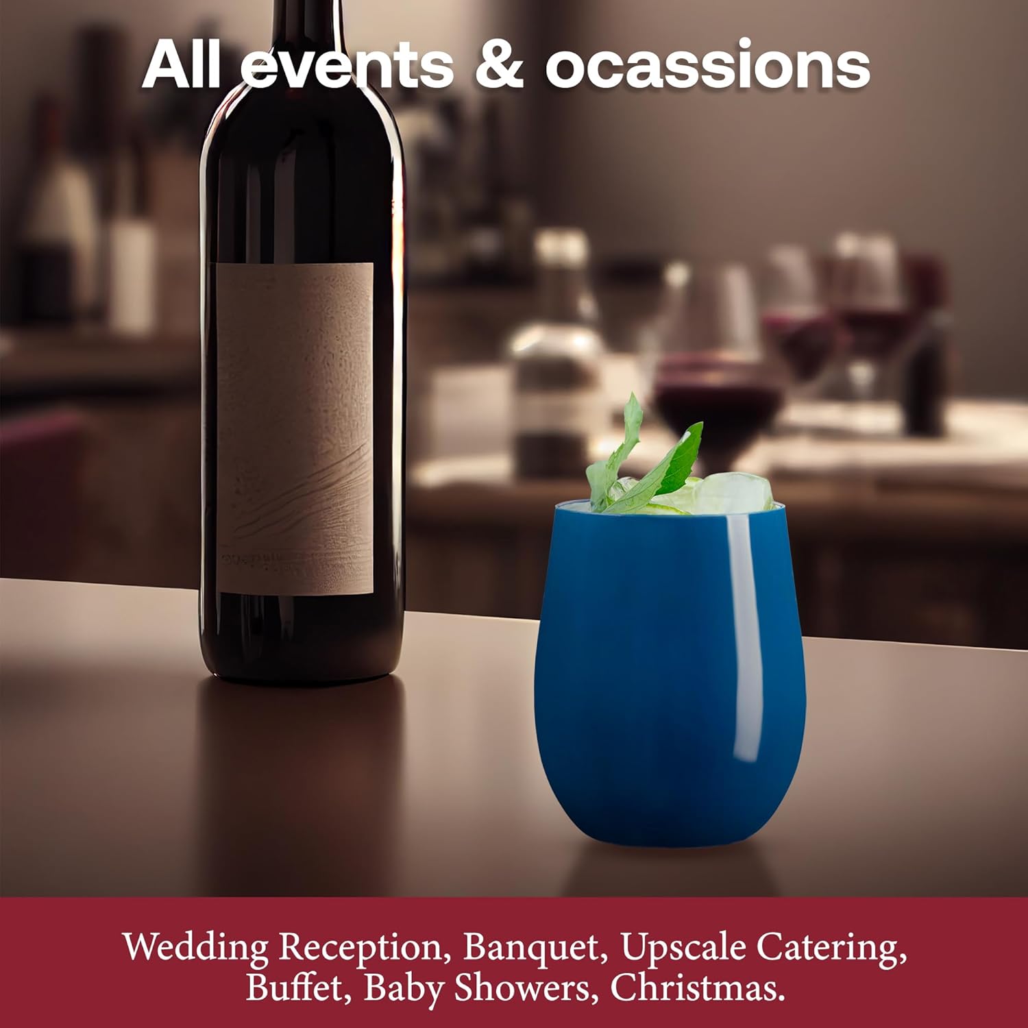 - CONVENIENT & VERSATILE: Enjoy easy cleanup with disposable stemless wine glasses, or reuse these plastic wine glasses reusable advantage for multiple events and celebrations.