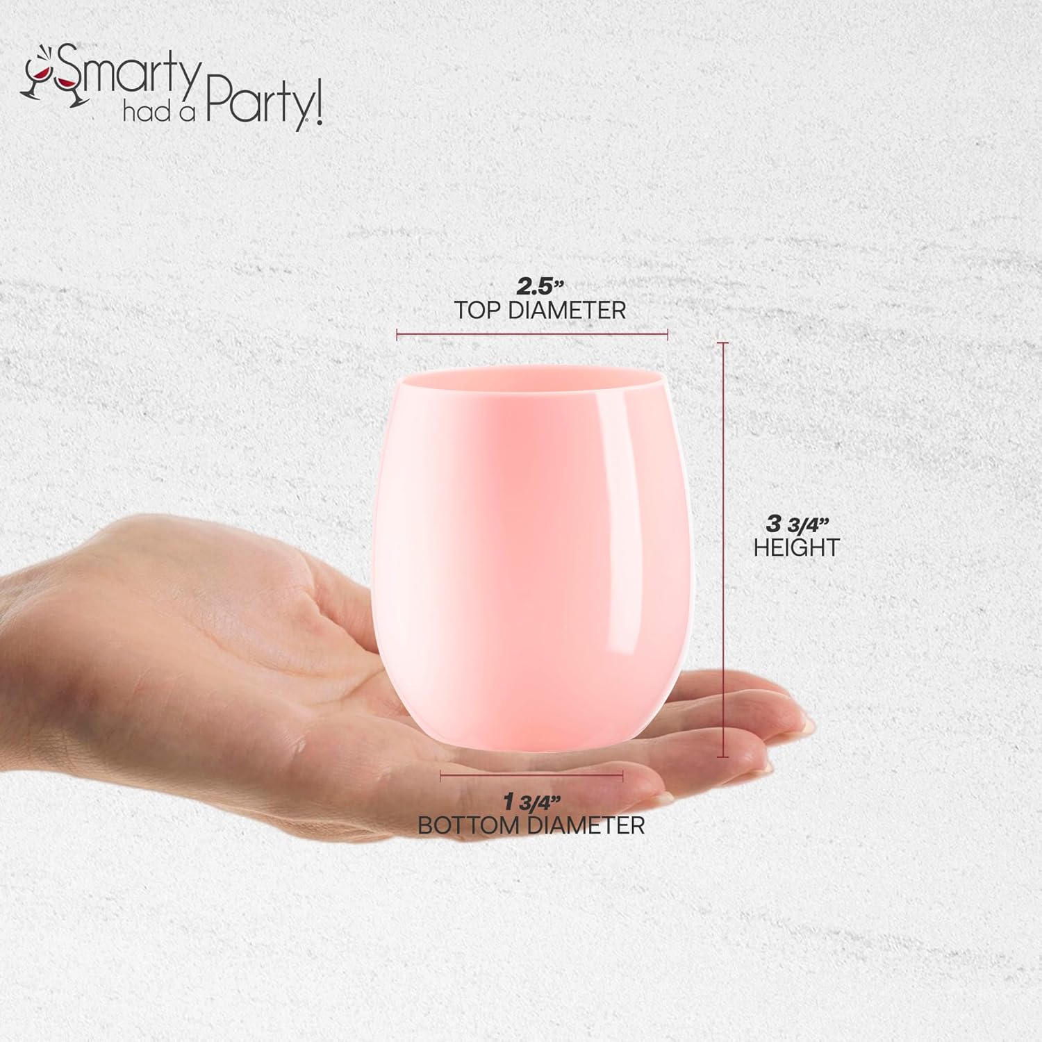 Smarty Had A Party 64 Glasses 12 oz. Solid Pink Elegant Stemless Plastic Wine Glasses, Disposable Drinkware, Plastic Wine Glasses for Parties