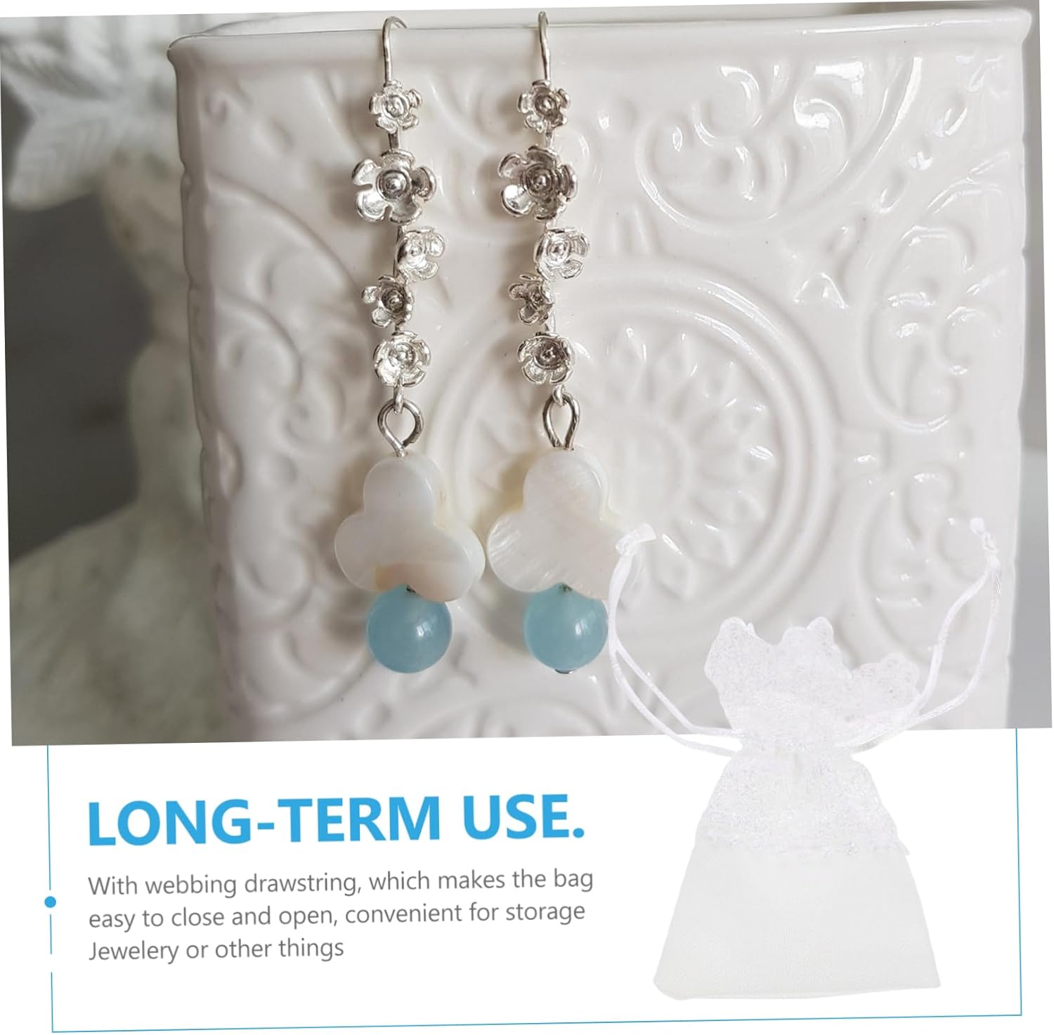 STOBOK 40Pcs White Lace Drawstring Jewelry Bags, Small Organza Bags, Lace Jewelry Pouches for Wedding Favors, Christmas Decors, Party Wrapping
