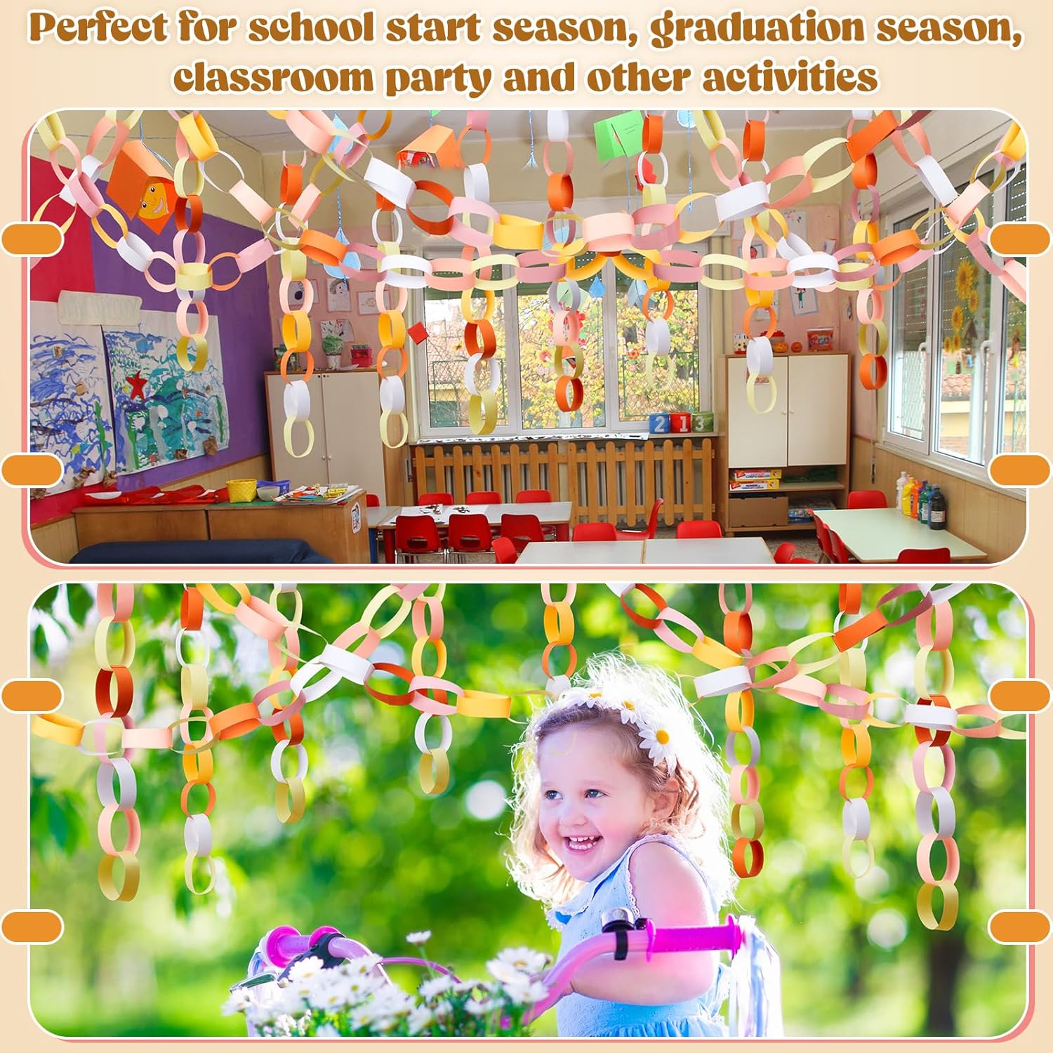 - Abundantly Colorful Paper Strips: the color palette is bountiful with our 600 sheets paper chain strips, equipped with 2 rolls of double sided tapes; The abundant quantity means you can create a paper chain that can stretch up to 28 feet in total length; The multitude of colors available broadens your design spectrum, bringing out ingenuity and creativity