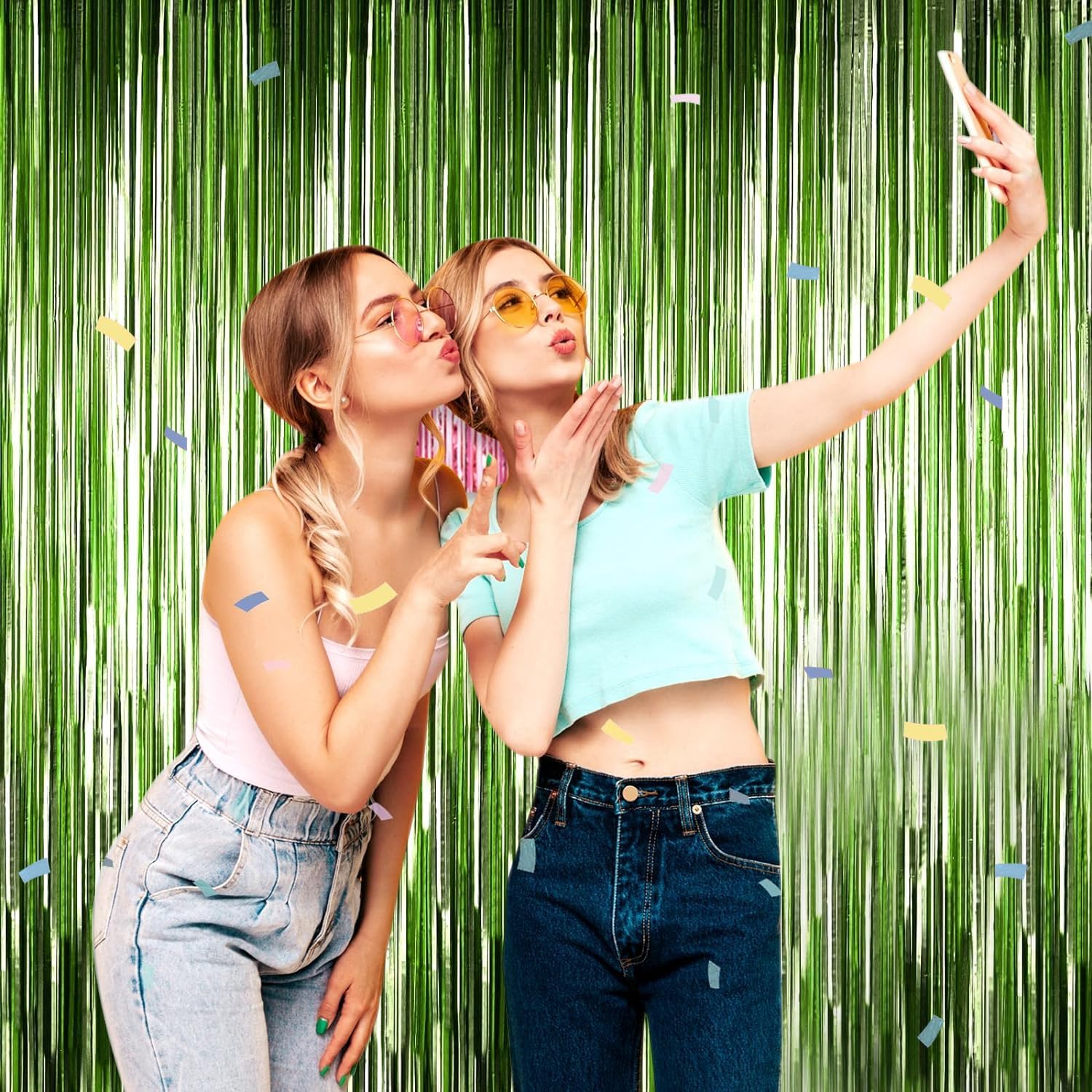 4P Metallic Foil Fringe Tinsel Table Skirts for Rectangle Tables Backdrop Banner Streamer Garland Curtains for Parade Floats Wedding Graduation Anniversary Birthday Parties Decoration (Light Green)