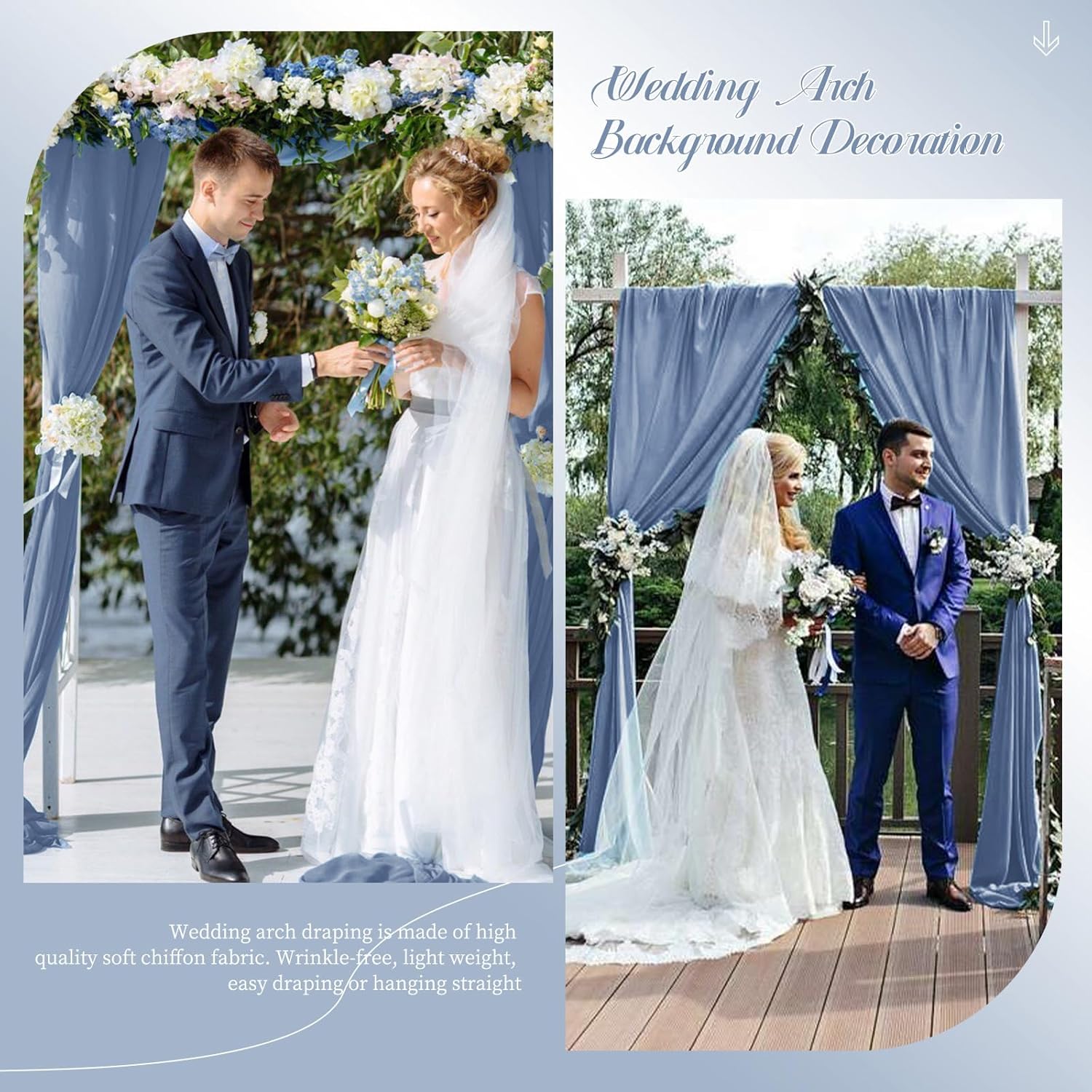 - 👑【Premium Wedding Arch Draping Fabric】This Dusty Blue chiffon drapery backdrop is made of high-quality chiffon material, with a soft and smooth touch without wrinkles. The high-quality workmanship makes all edges sewn beautifully and has good durability. Soft sheer drapes will help to create beautiful folds or leave it flowing loose onto the floor, Create a romantic scene easily.