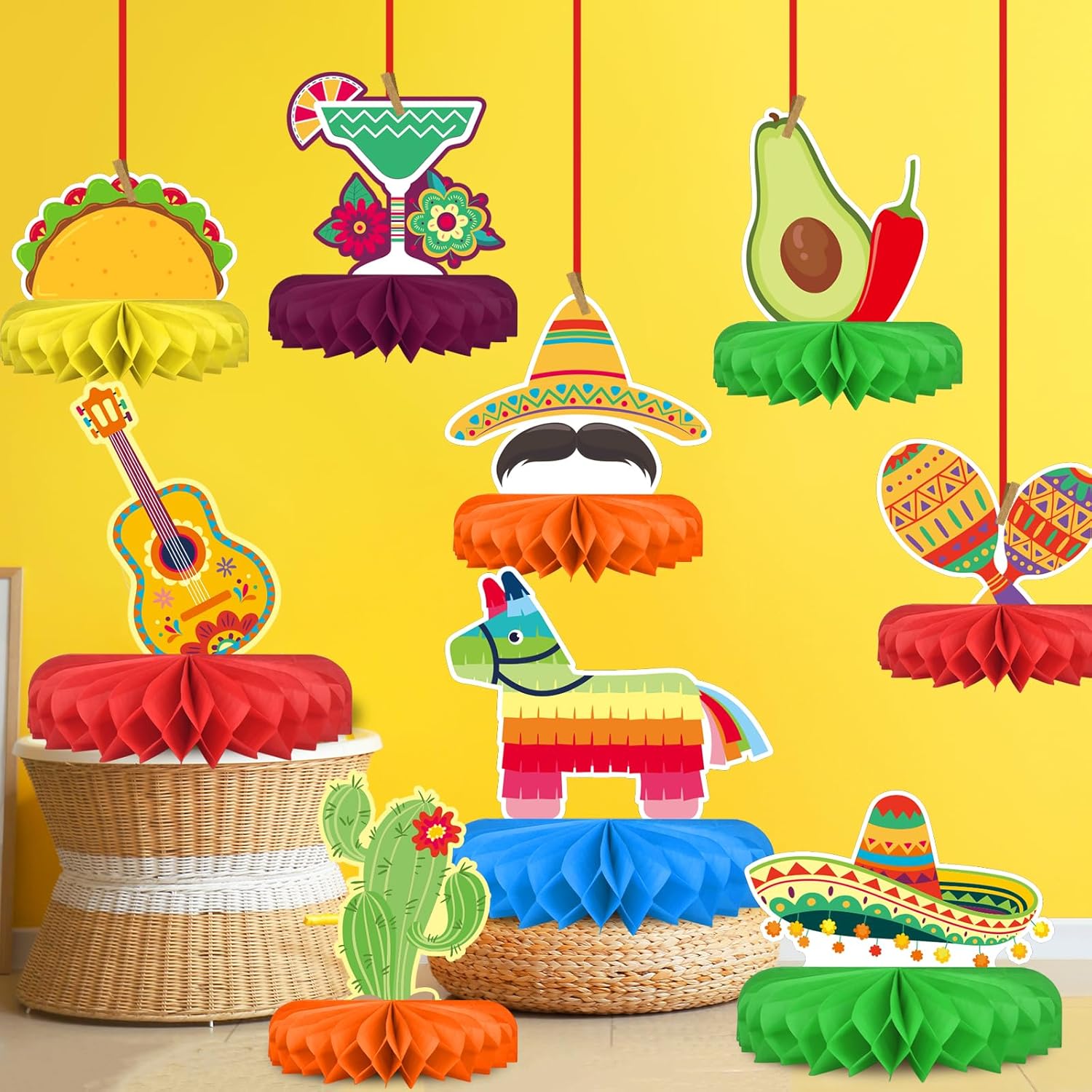 - Celebrate in Style: Elevate your Cinco de Mayo with our Pack of 9 Fiesta Table Centerpieces. Perfect for fiesta party decorations, these vibrant additions promise an unforgettable experience. Transform your space with Mexican party decorations that are all about fun, color, and creating the perfect party atmosphere. Make the most of your event with effortless charm and become the host everyone remembers!