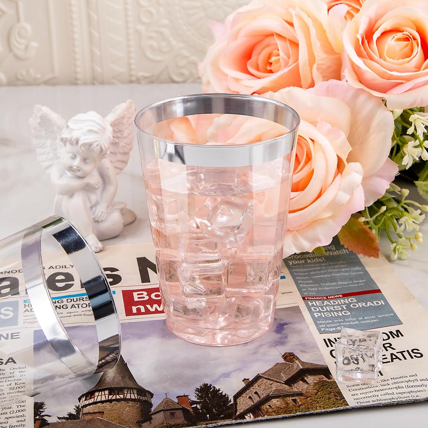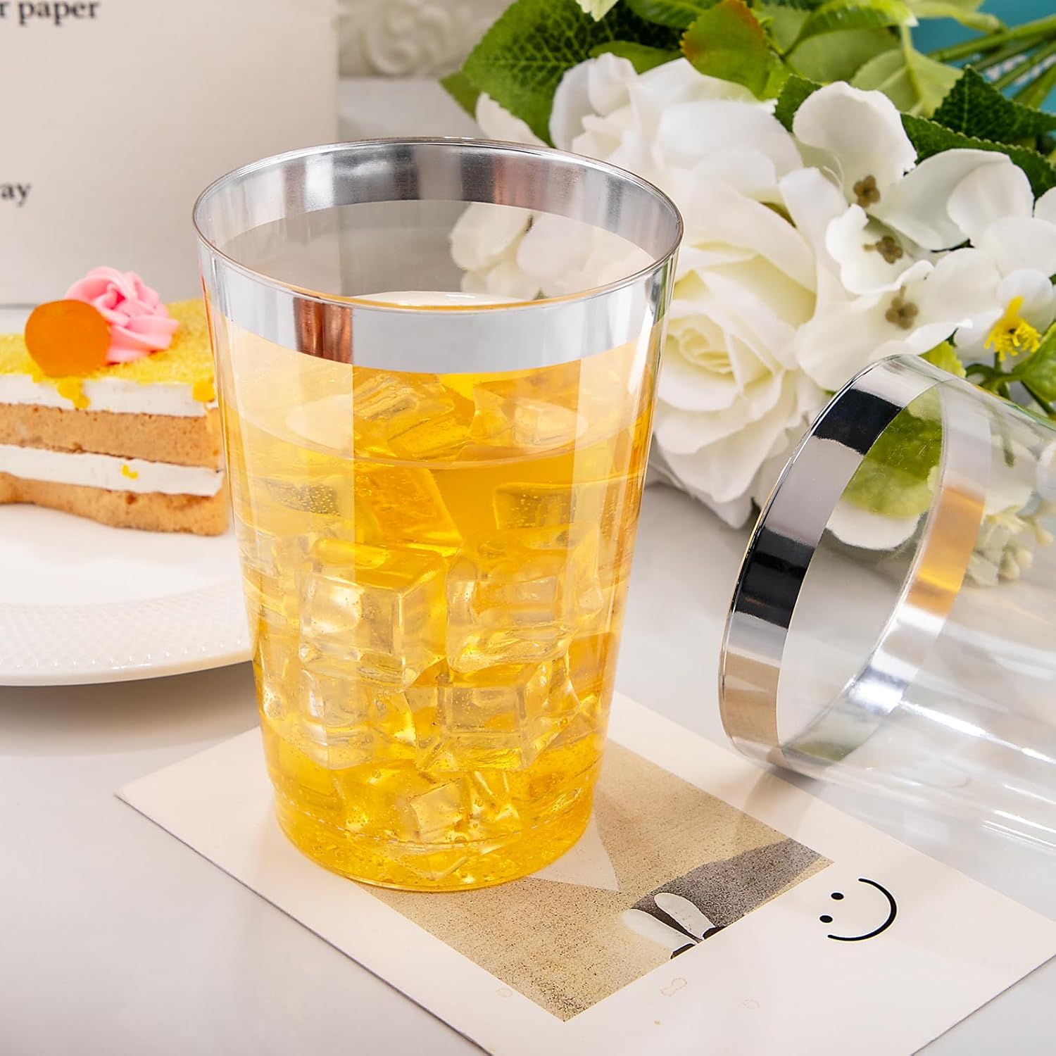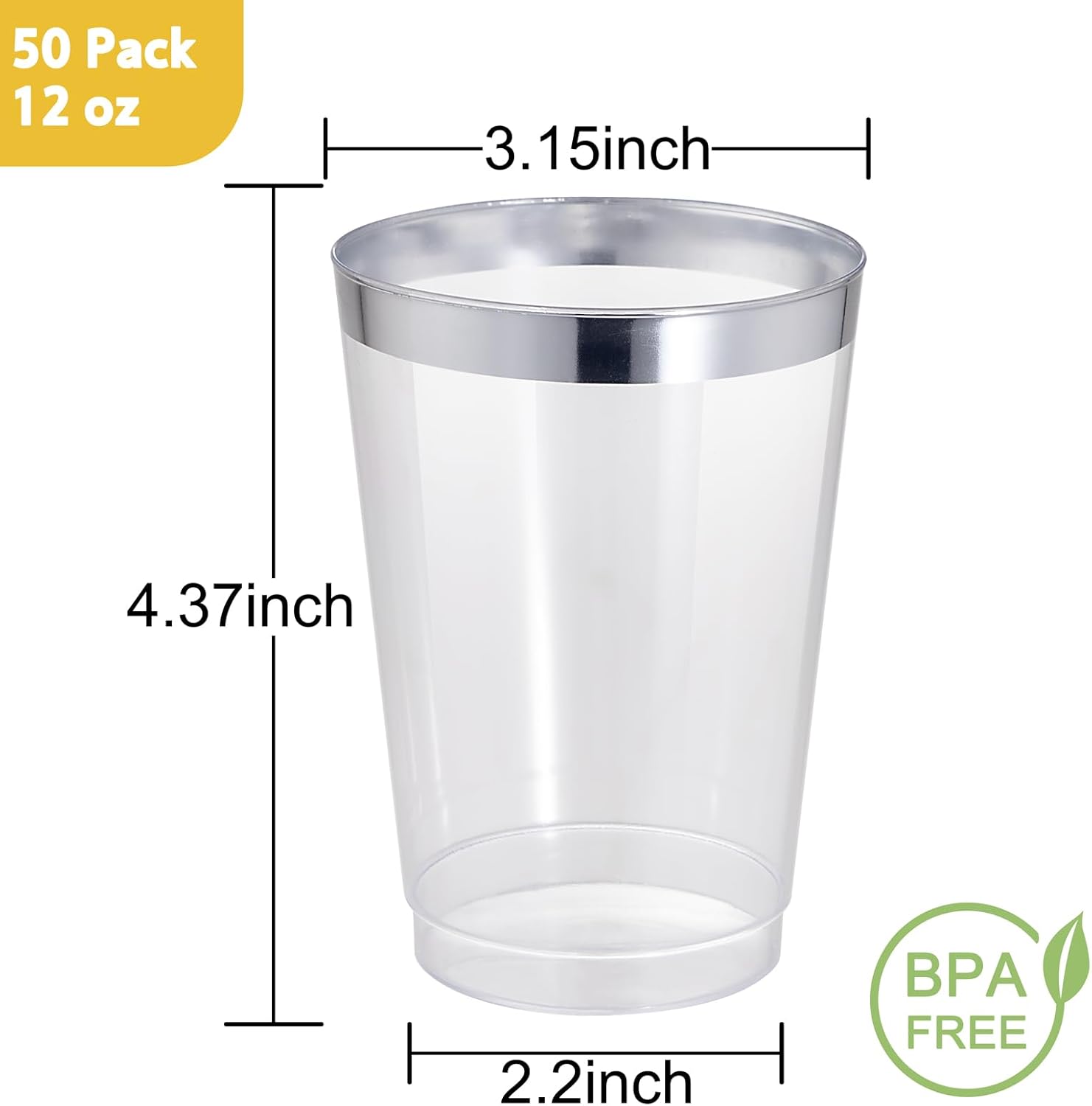 - Elegants Appearence: The 12 oz disposable clear plastic cups with silver trim are crystal clear all over, presenting a high-end appearance for a good clear visibility. The silver appearance and luster make these silver disposable cups look more upscale in any setting.