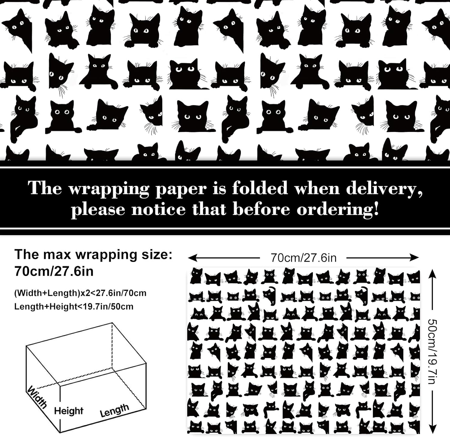 - CAT DESIGN: Our wrapping paper adopts cartoon design with various black cats, cute and delicate, will nicely increase the fun atmosphere, great for gift wrapping.