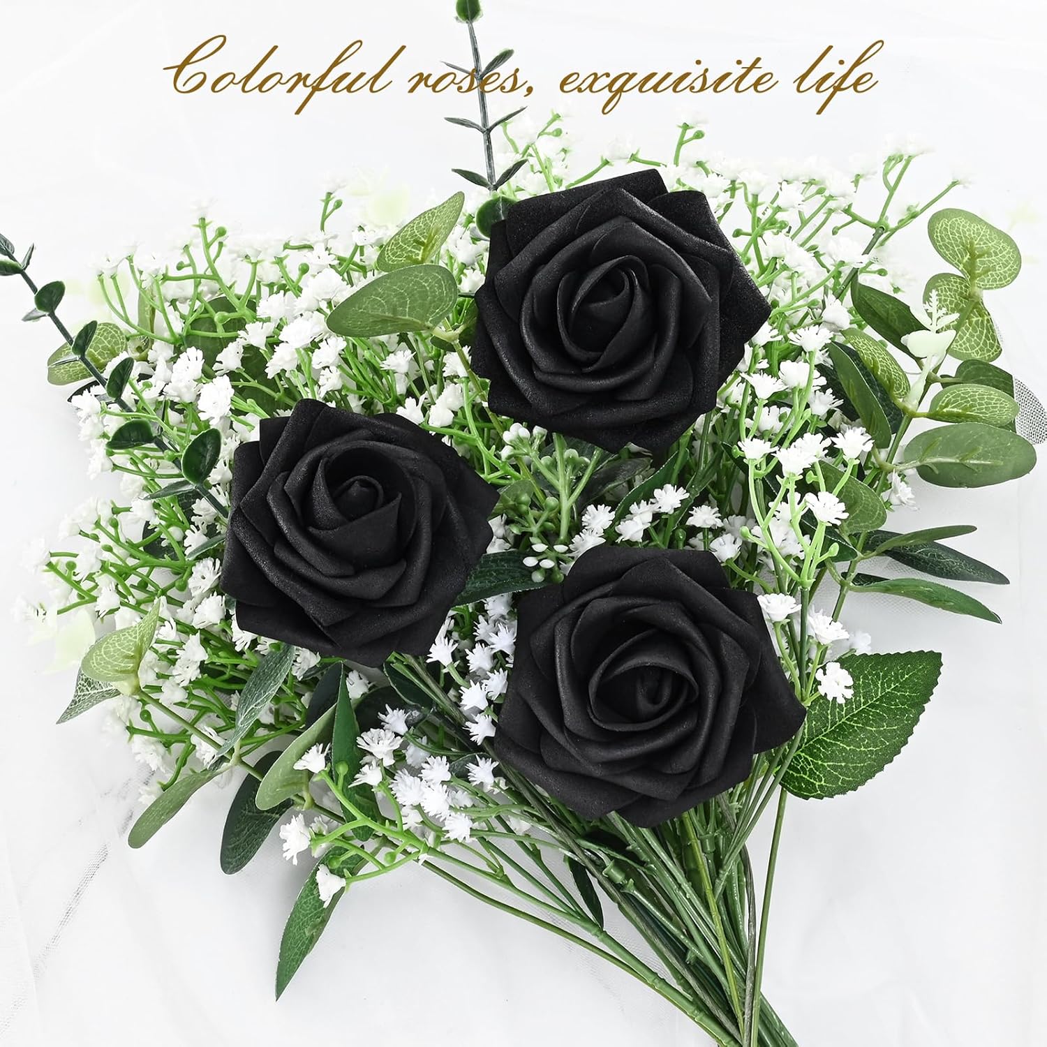 - Kindle Your Creative Flames: The box includes 36 black roses (3" flower head, 8" stem) and 8 green rose leaves, perfect for an array of DIY crafts. Whether creating wedding bouquets, graduation or birthday party ornaments, baby shower decorations, or cake adornments, our faux roses add a touch of class to every important moment.