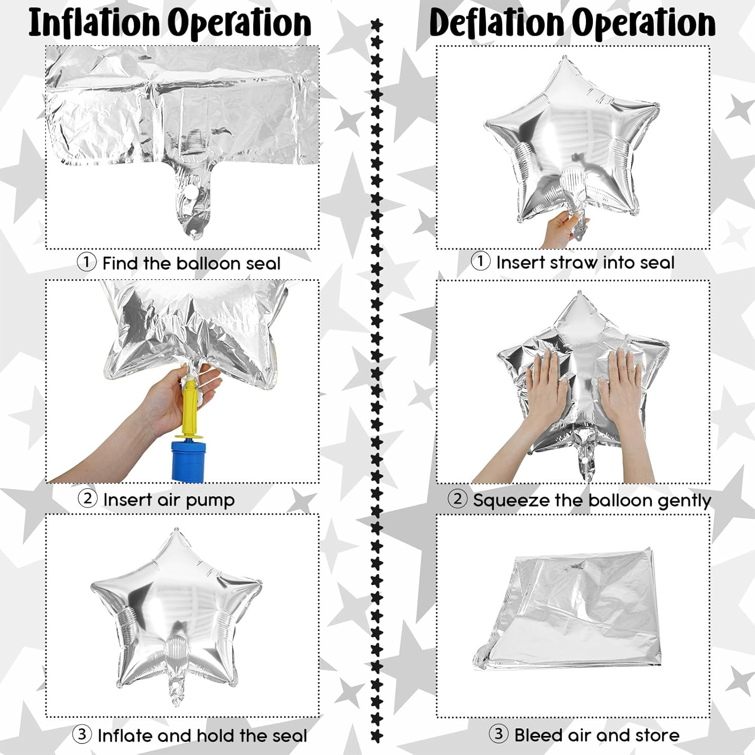 - Easy to Set Up: The stars foil balloons can inflate with helium or air. It is recommended to inflate to 90% to prevent the balloon from bursting.