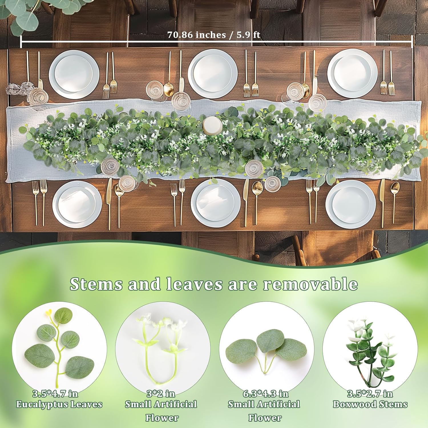 - ๐๐๐๐ & ๐๐ช๐ก๐ก & ๐ฝ๐๐๐ช๐ฉ๐๐๐ช๐ก: Discover the beauty and vitality of life in our charming mix of eucalyptus garland! Our faux eucalyptus garlands mixed eucalyptus leaves and boxwood leaves together, which makes the whole vine look full, beautiful and filled with rich layers. The vibrant display of greenery garland interspersed with gentle white blooms adds a natural, elegant touch to any decor.