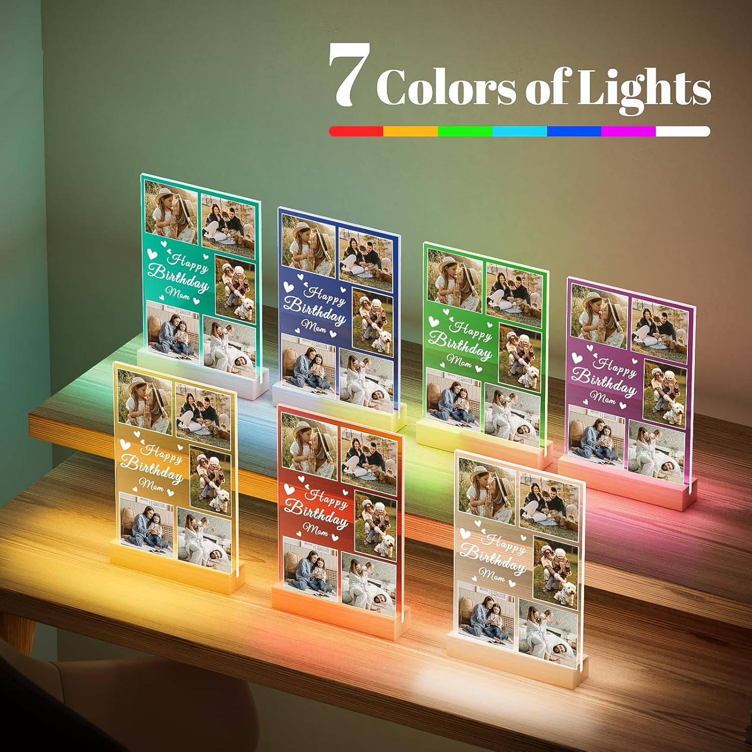 Personalized Birthday Gifts for Mom from Daughter Son, Custom Collage Picture Frames with Night Light, Customized Acrylic Plaque Photo Frame, Personalized Photo Gifts for Mom, Baby, Kids, Family
