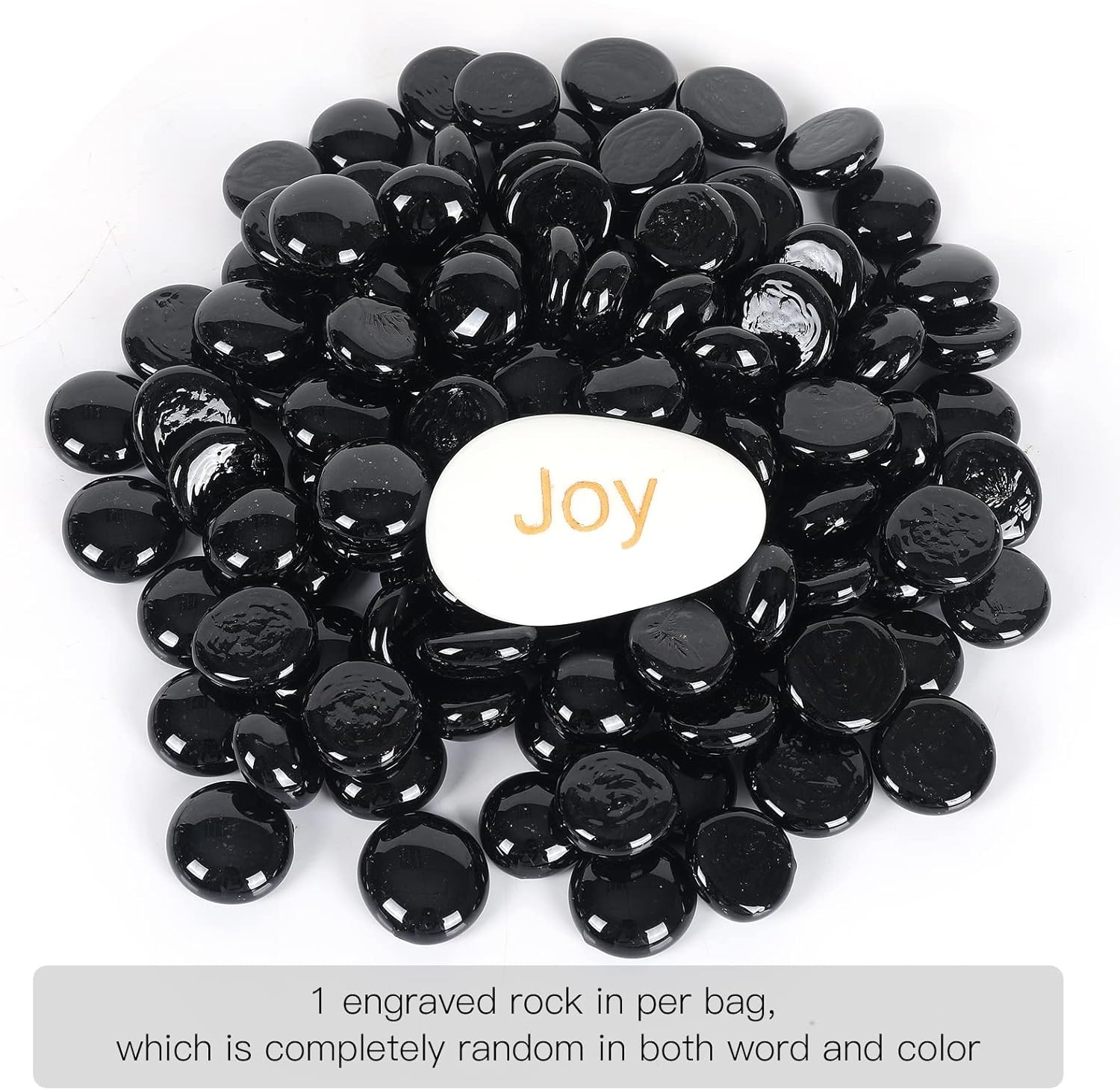 - 【Size & Color】The length of Ausluru pretty glass beads ranges from 0.6”-0.7”, Black Color. Come with 11lb and one engraved rock with different words of inspiration in per bag.