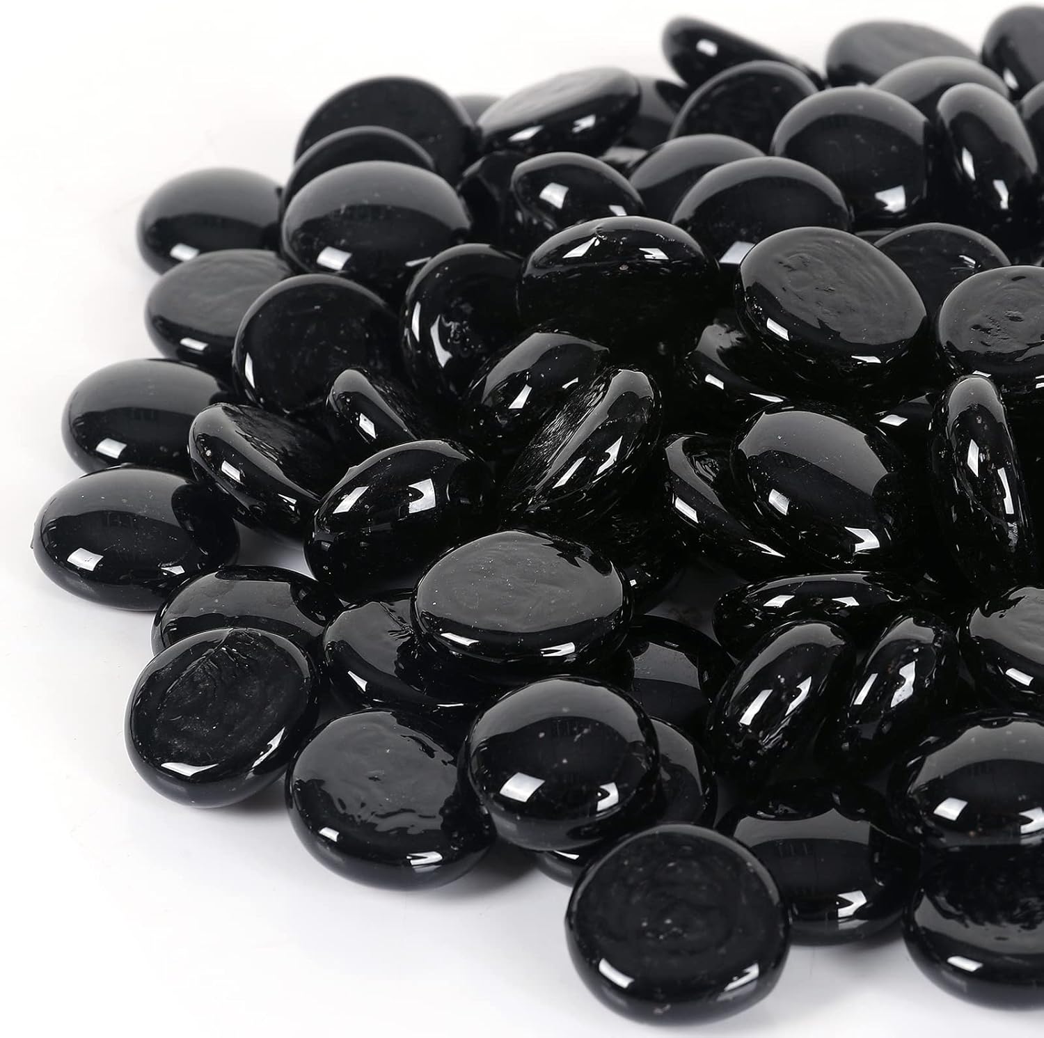 11LB Fire Glass Beads Flat Glass Marbles for Outdoor Fire Pit and Fireplace, Glass Gemstones for Vase Filler, Aquariums, Hydroponics Plants, Home Decor and Christmas DIY Craft, Black