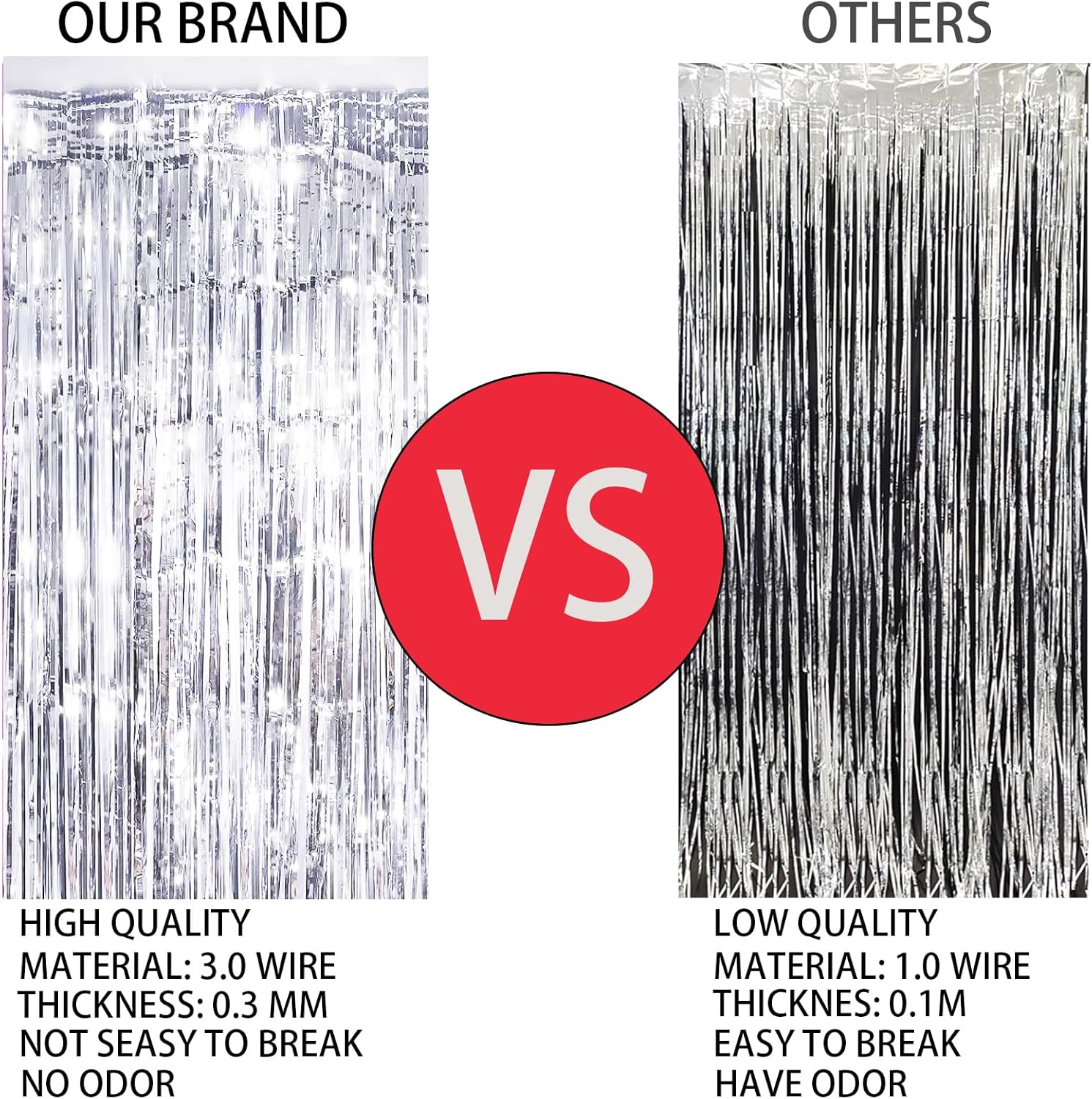 - 3 Pack foil fringe tinsel backdrops: each measuring a whopping 3.3 ft x 8.3 ft.Long enough for indoor or outdoor parties. Also can be cut in suitable length for your birthdays Party decorations These backdrops are perfect for creating stunning party decorations, event backdrops, and photo booths that will leave your guests in awe.