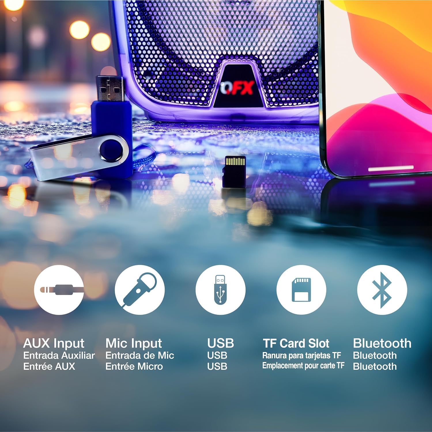 Crystal Clear Sound, Bright Party Lights, Portable & Easy to Use | 8" Rechargeable Bluetooth PA Karaoke Loud Party Speaker, 5-Hour Playtime | TWS, USB, TF, AUX, FM Radio | QFX | TMS-853