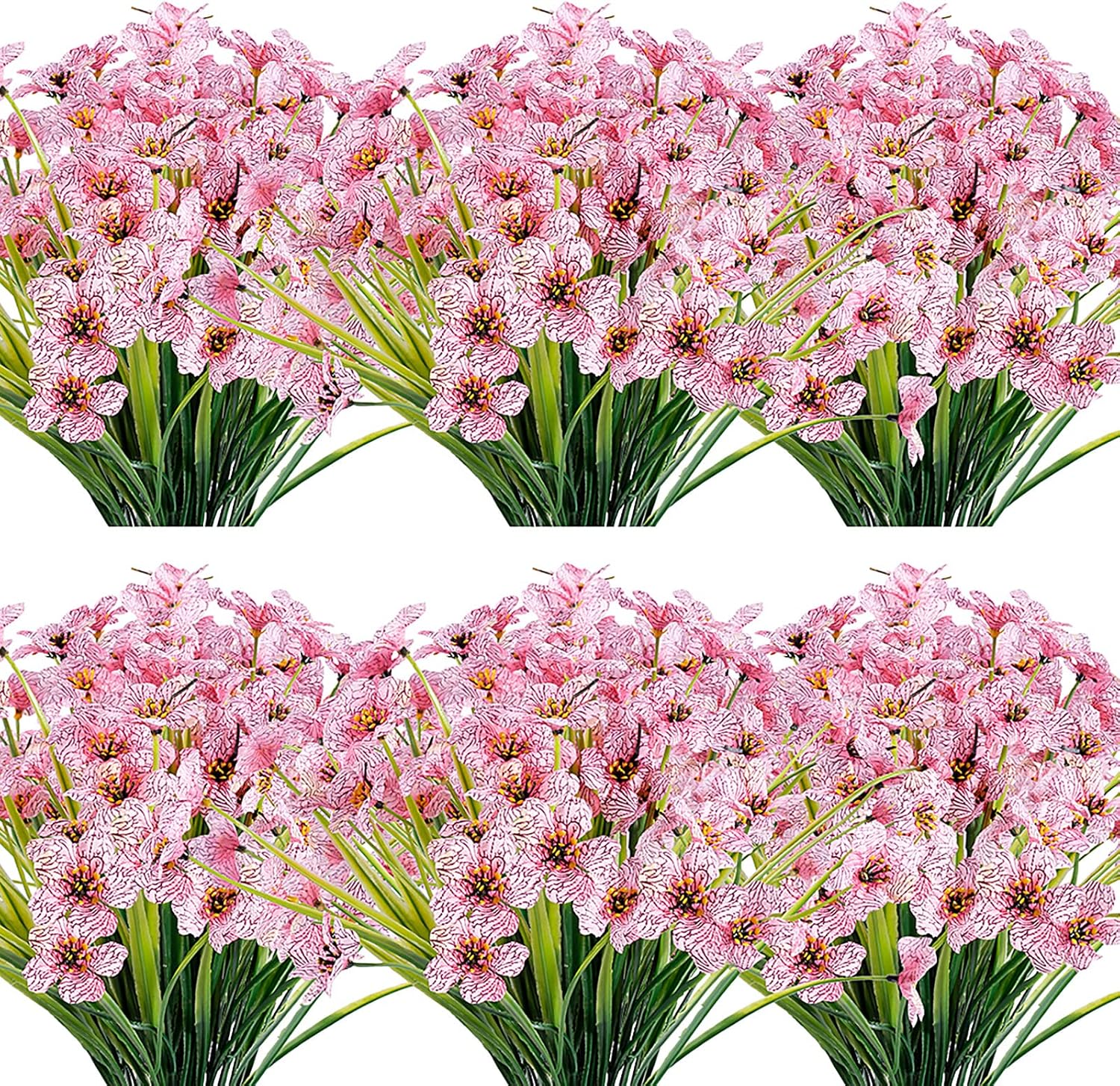 20 Bundles Artificial Flowers Outdoor UV Resistant Fake Flowers No Fade Faux Plastic Plants Garden Porch Window Box Decorating(Pink)…