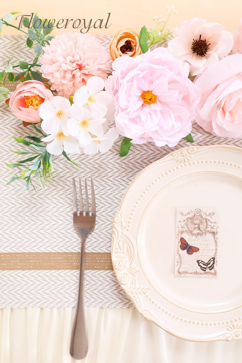 - ♔EASY TO DIY & CARE-Floweroyal fake flower is a box of pre-selected flowers by color, size and type. If you don't know how to make flower arrangements, we have picked out all the right kind of flowers for you to create. Our flexible plastic flower stems have built-in iron wires. It's very easy to stick in flower mud to arrangements or bend for DIY. Do not have to water and no dead leaves. Easy to clean and remove the dust. Not easy to fade. Easy to store for a long time and use repeatedly.