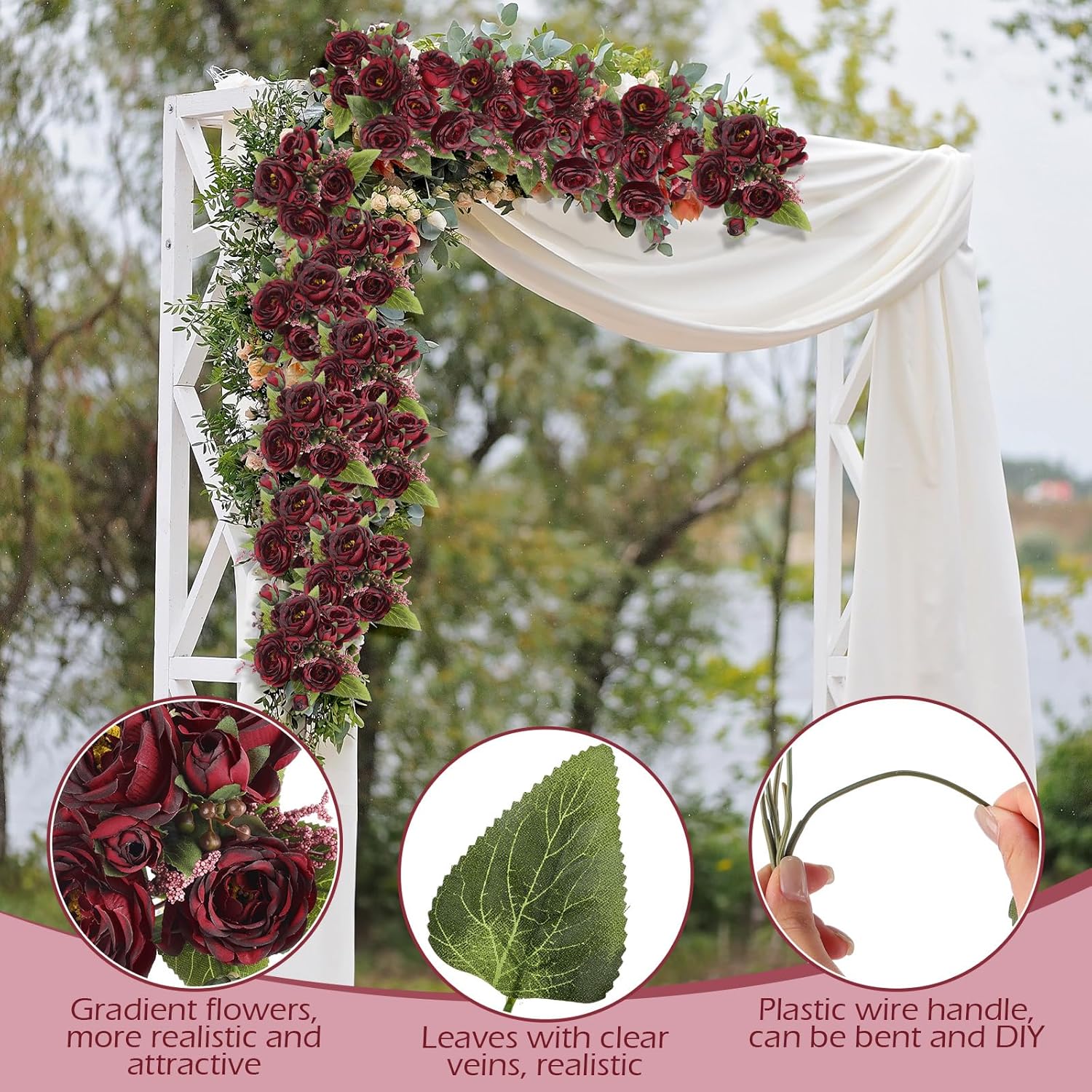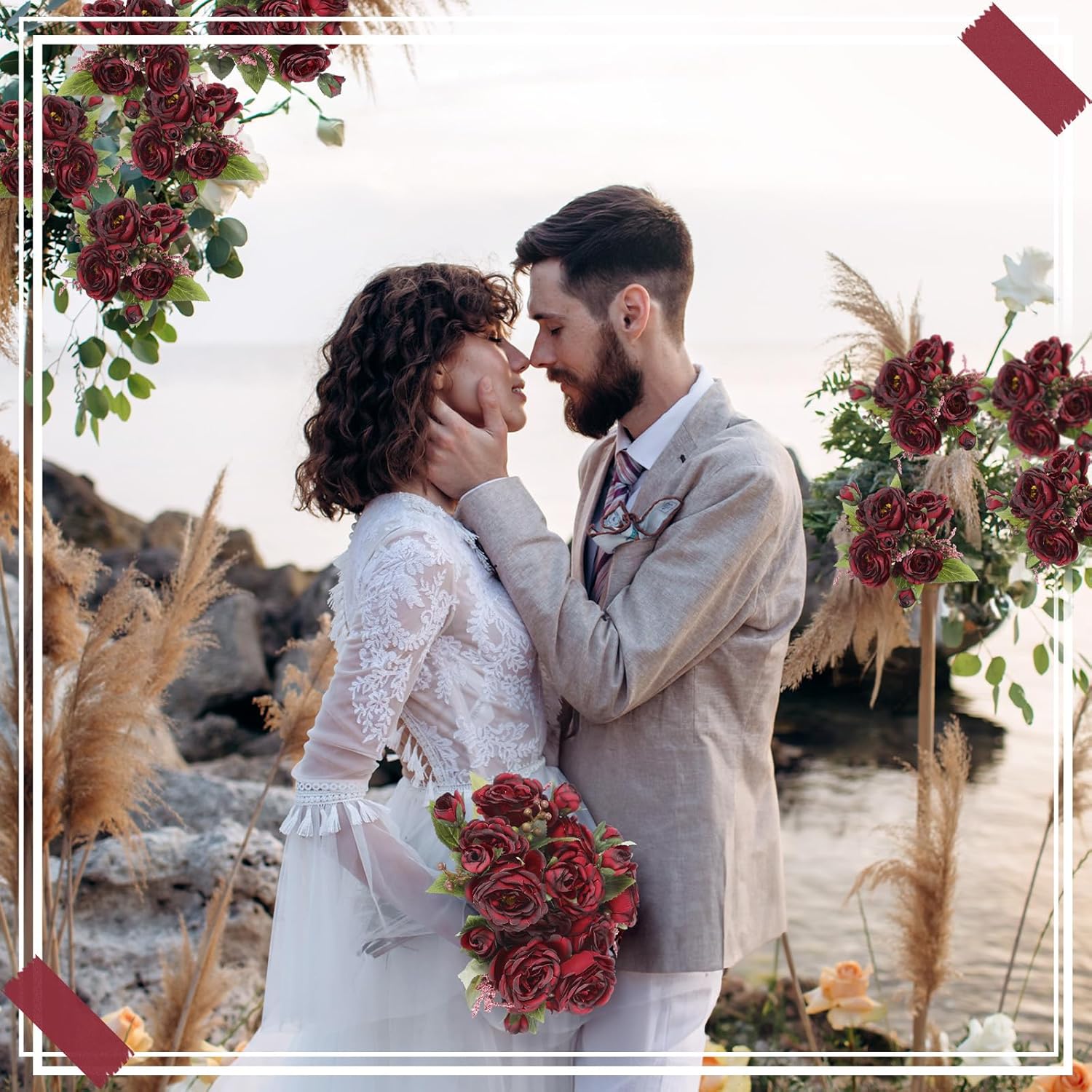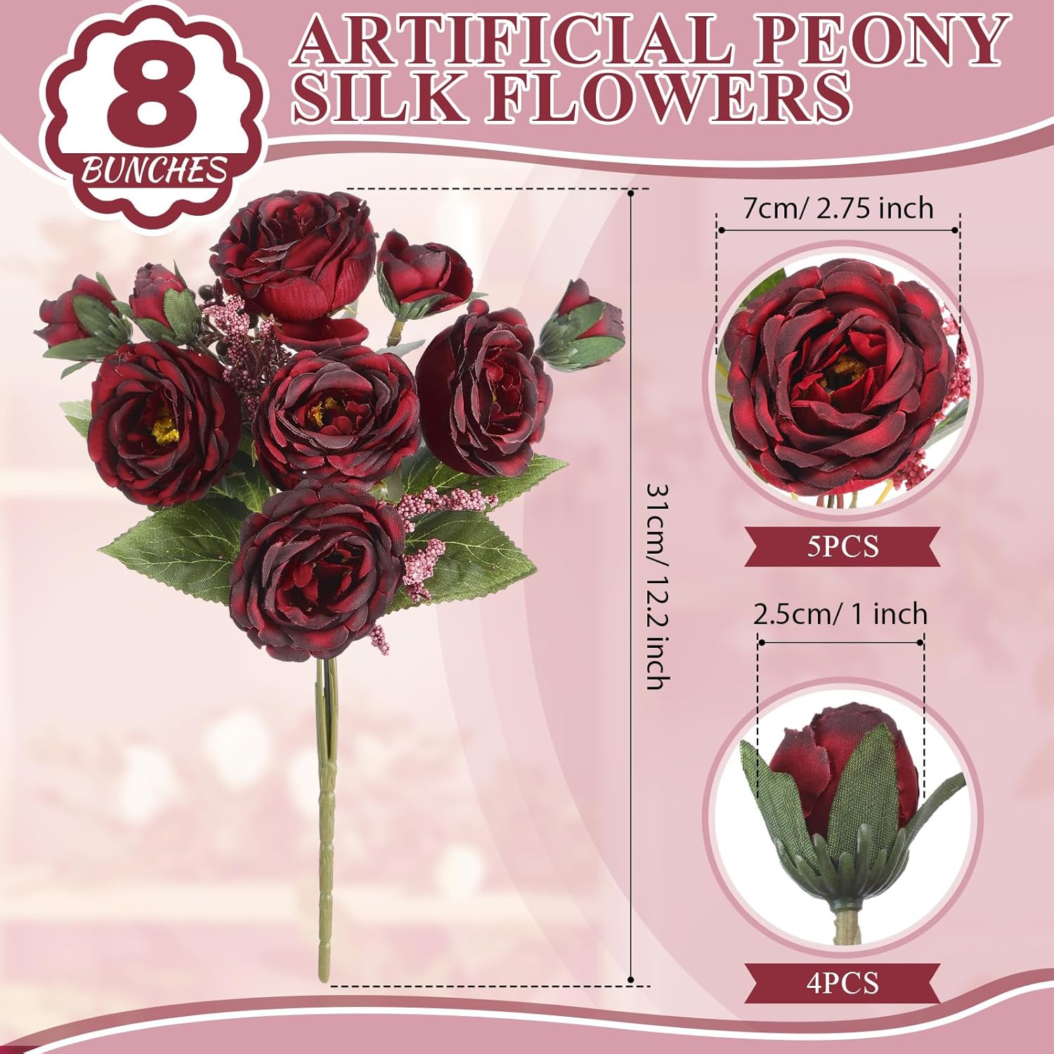 8 Bundles Artificial Peonies Flowers Boho Faux Flowers Arrangements Artificial Centerpiece Spring Bouquet Floral Wedding Decoration for Vase(Burgundy)