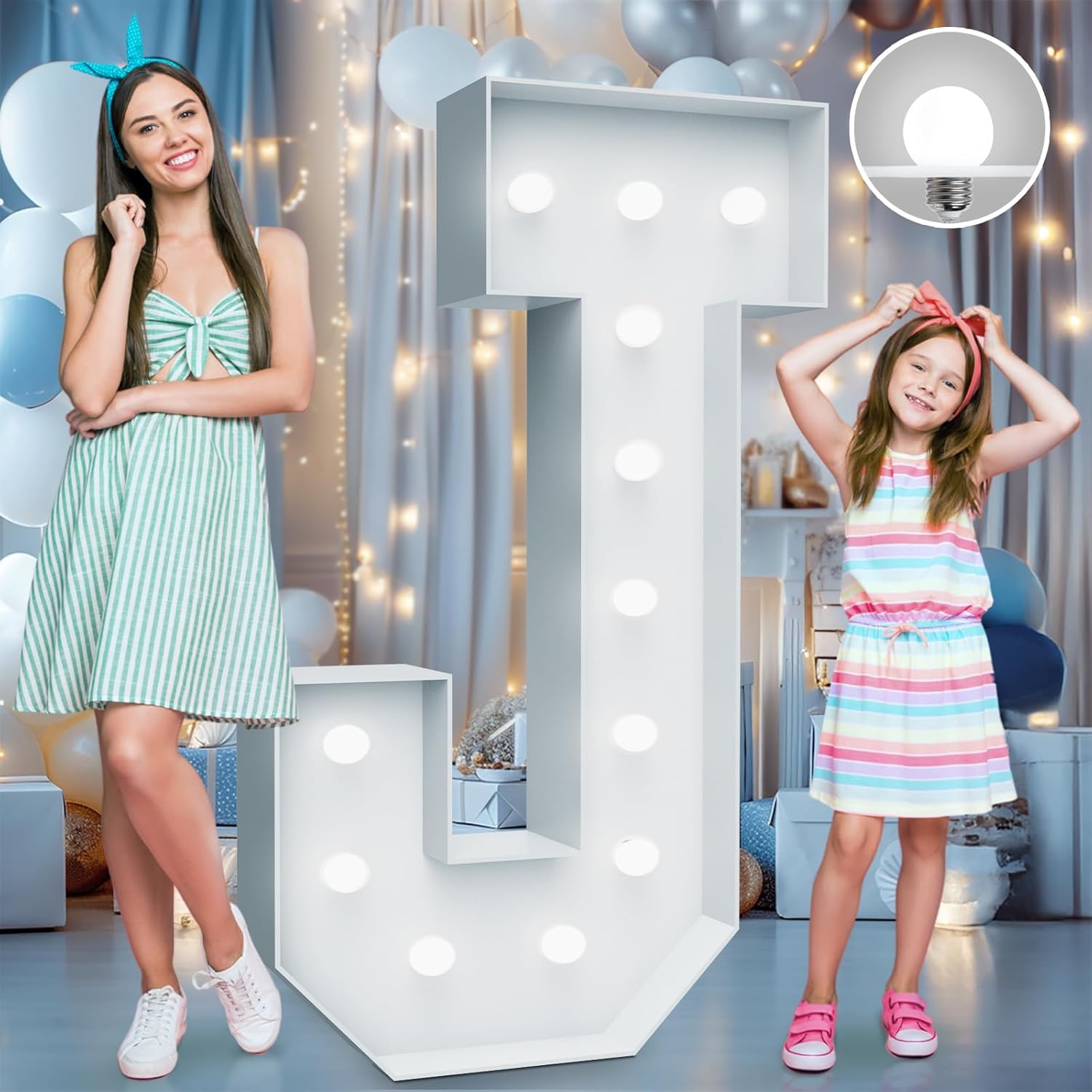 4FT Marquee Light Up Letters - Cool White Light Up Letters J with Fixed Water Bag, Party Decoration Large Marquee Light Up Letters can Be Used for Wedding Decoration, Birthday Party Decoration