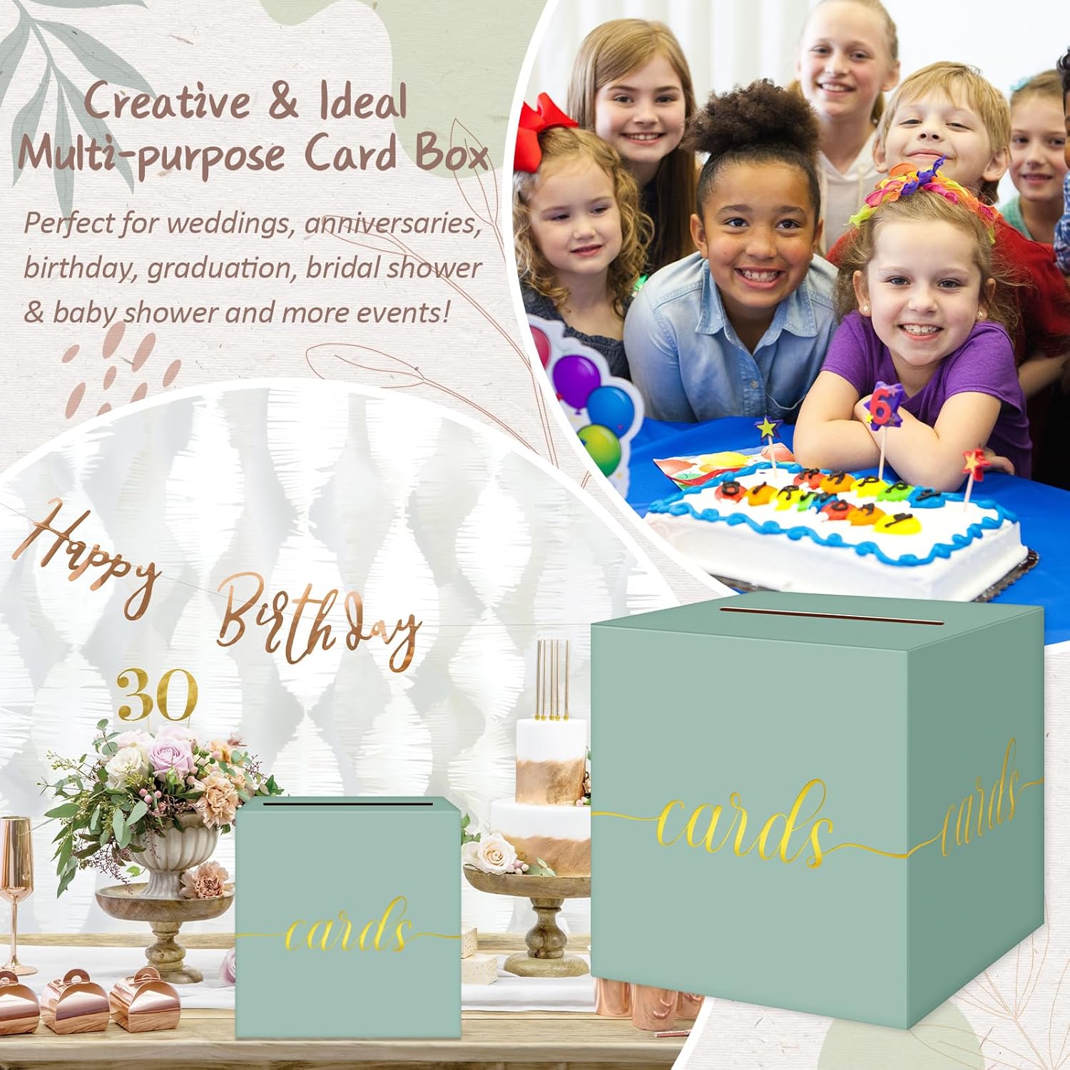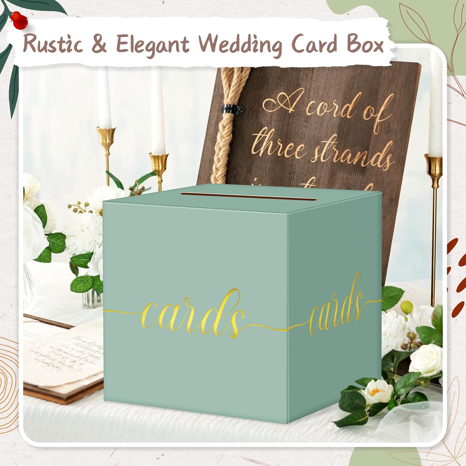 QIKSION Sage Green Wedding Card Box, Gold Foil Gift Card Box for Party, Wedding Reception, Birthday, Baby Shower, Raffle, Graduation