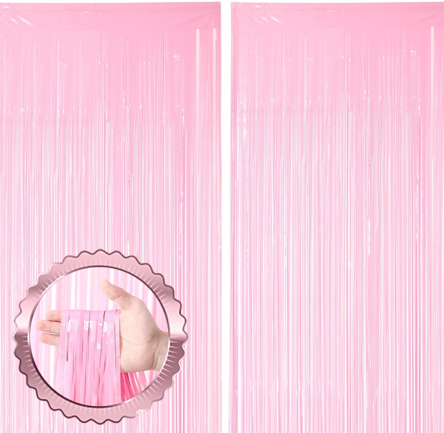 - Stunning Decorative Set: You'll receive 2 pcs pastel pink foil fringe backdrop curtains, each measuring 3.28 ft (wide)Γ6.56 ft (drop). Enough length foil fringe curtains backdrops are perfect for the door or wall to create an impressive decoration